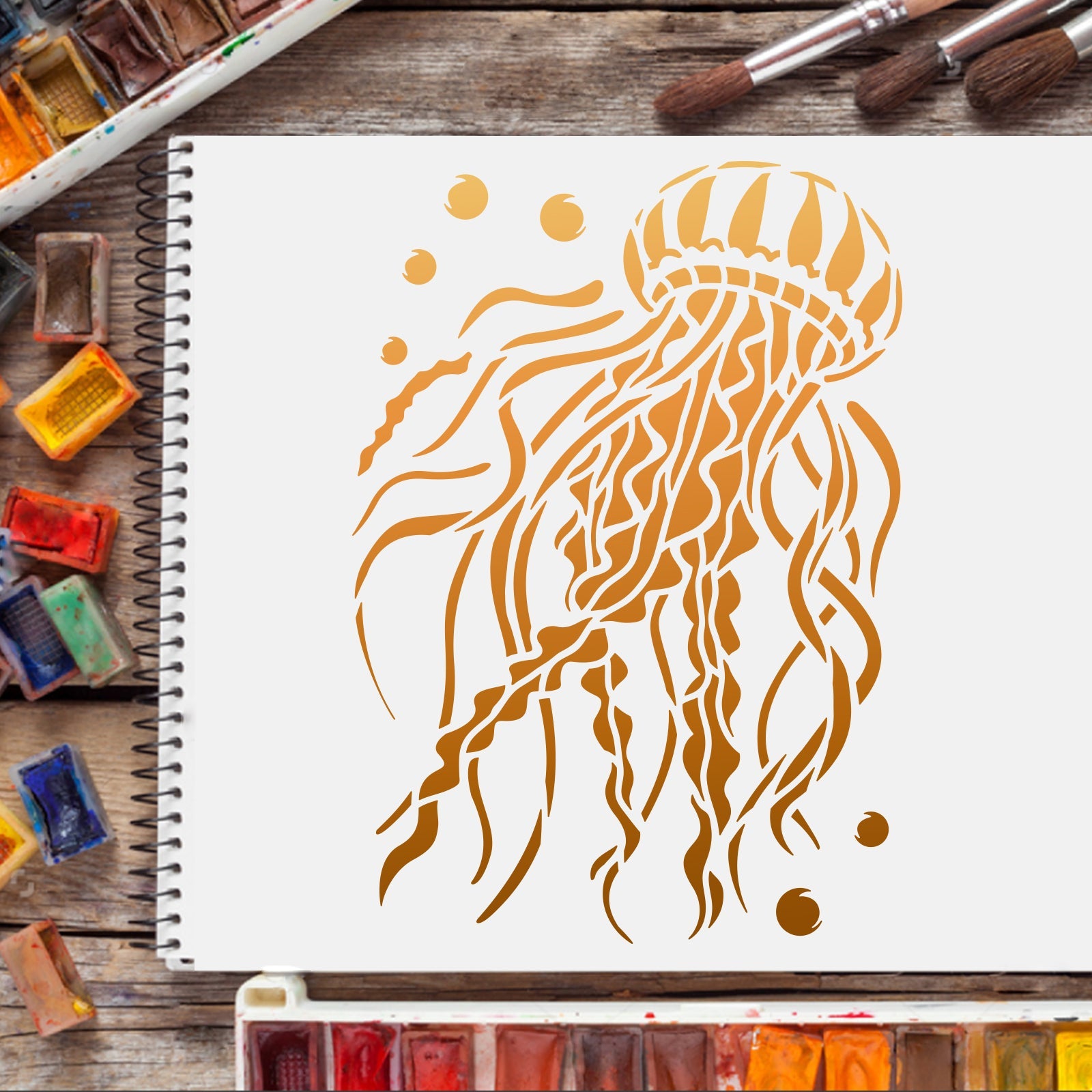 Plastic Drawing Painting Stencils Templates, Rectangle, Jellyfish Pattern
