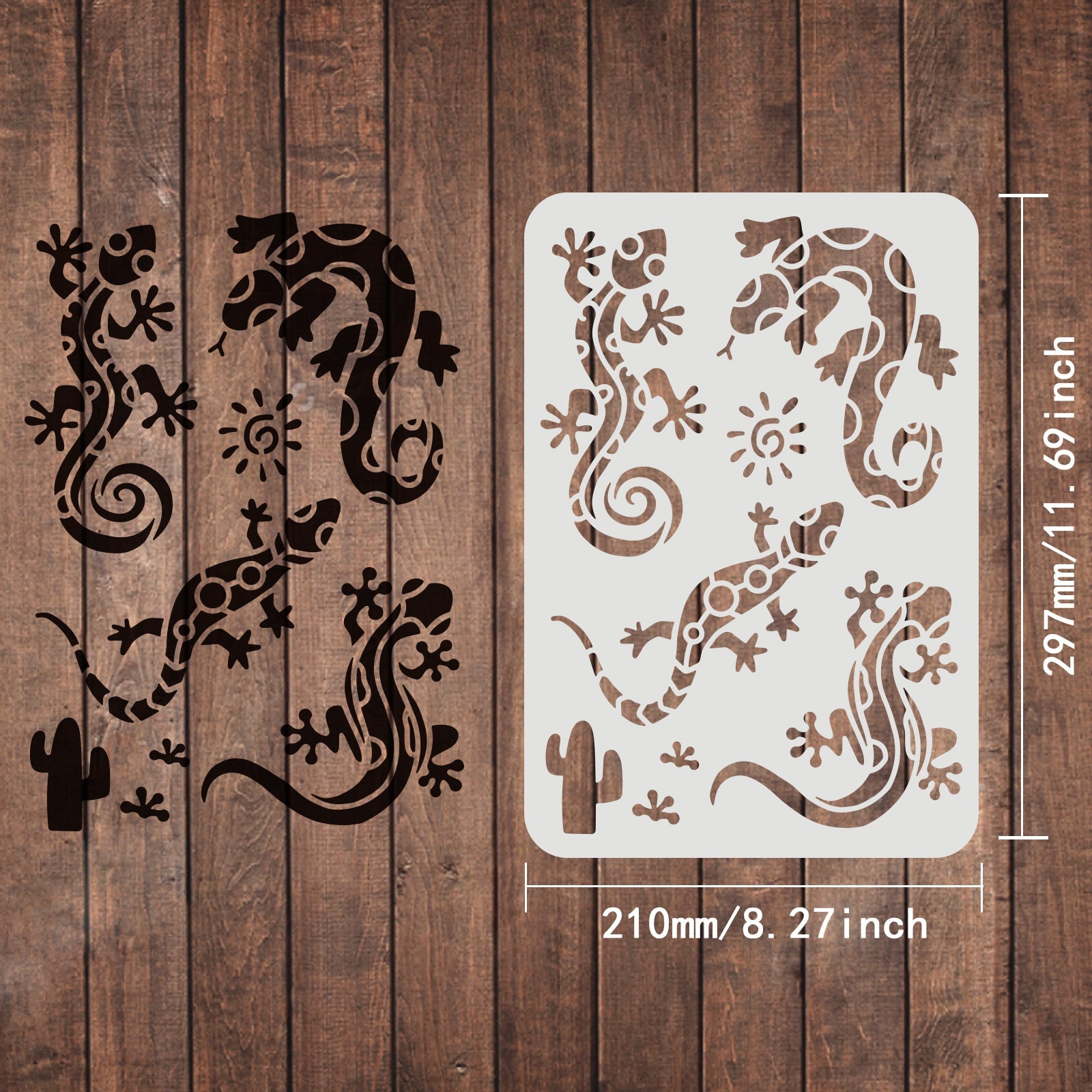CRASPIRE Plastic Drawing Painting Stencils Templates, Rectangle, Lizard Pattern, 297x210mm
