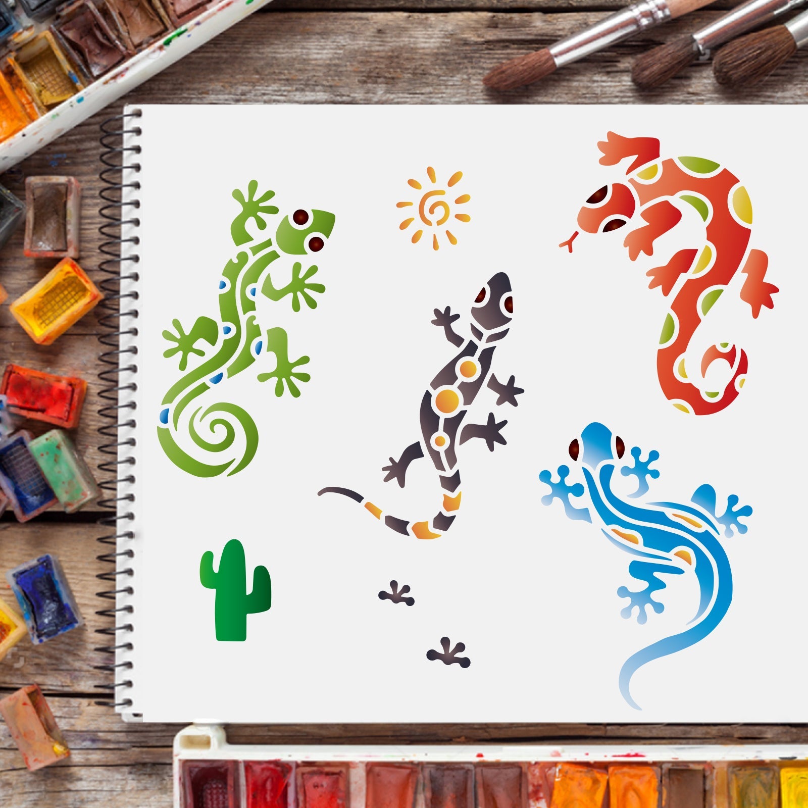 Plastic Drawing Painting Stencils Templates, Rectangle, Lizard Pattern