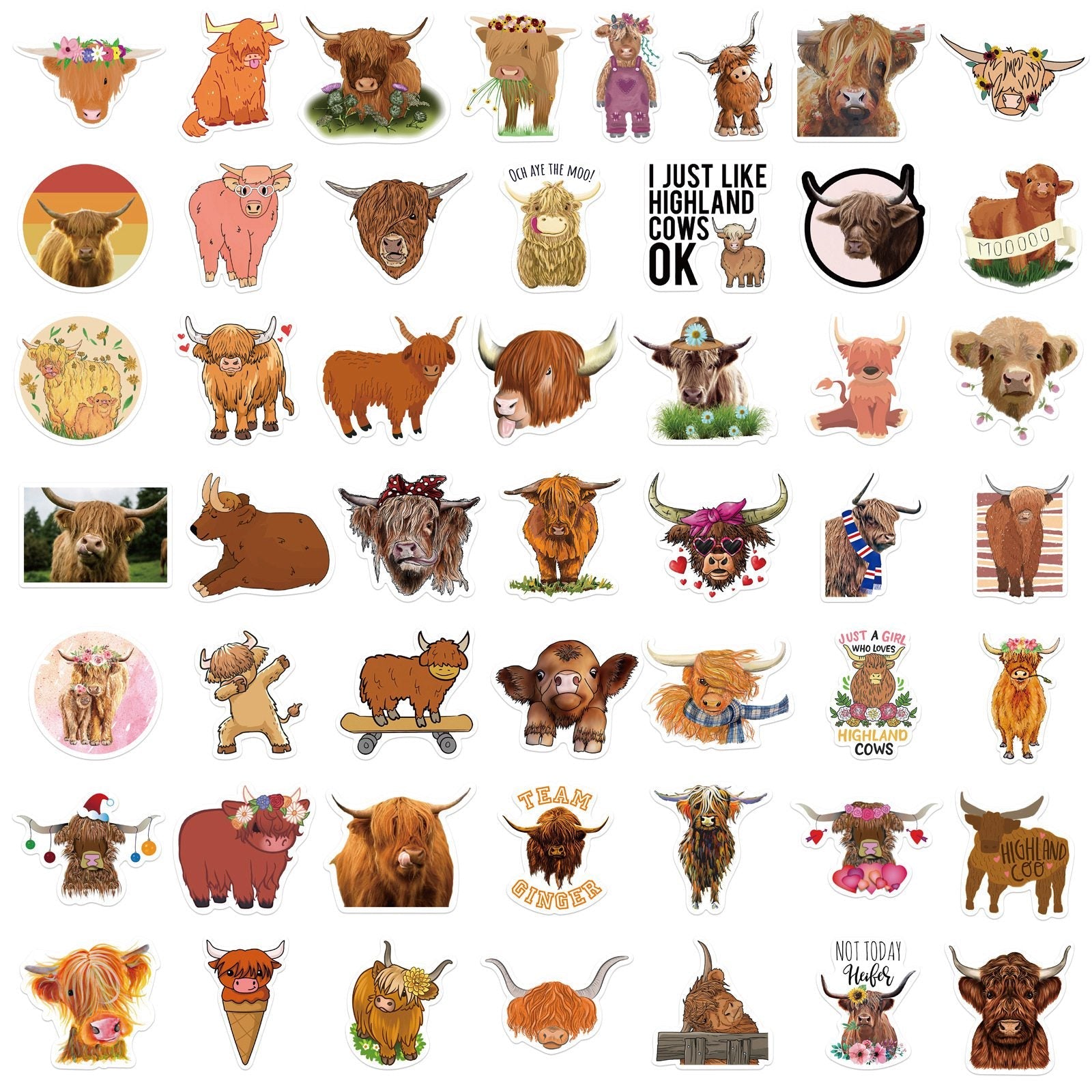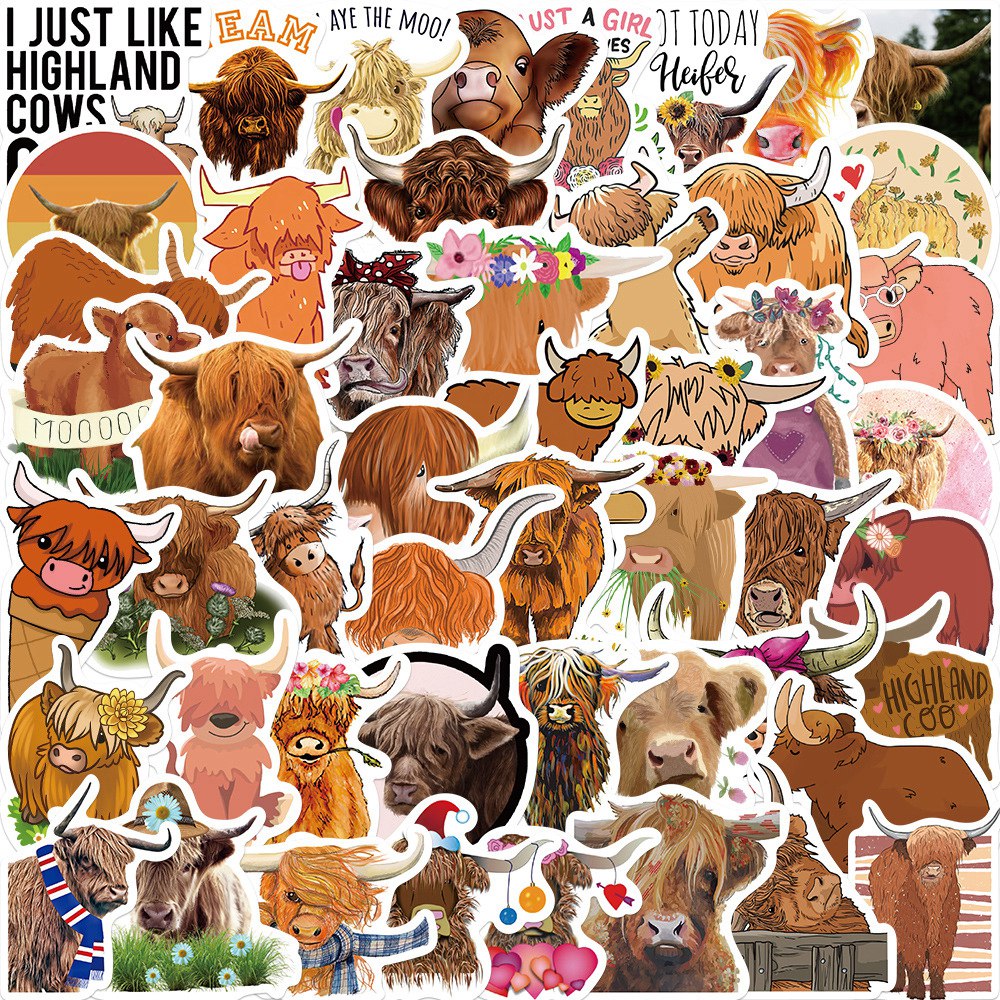 Craspire PVC Adhesive Stickers, for Suitcase, Skateboard, Refrigerator, Helmet, Mobile Phone Shell, Cattle Pattern, 3~6x3~6cm, 50pcs/bag