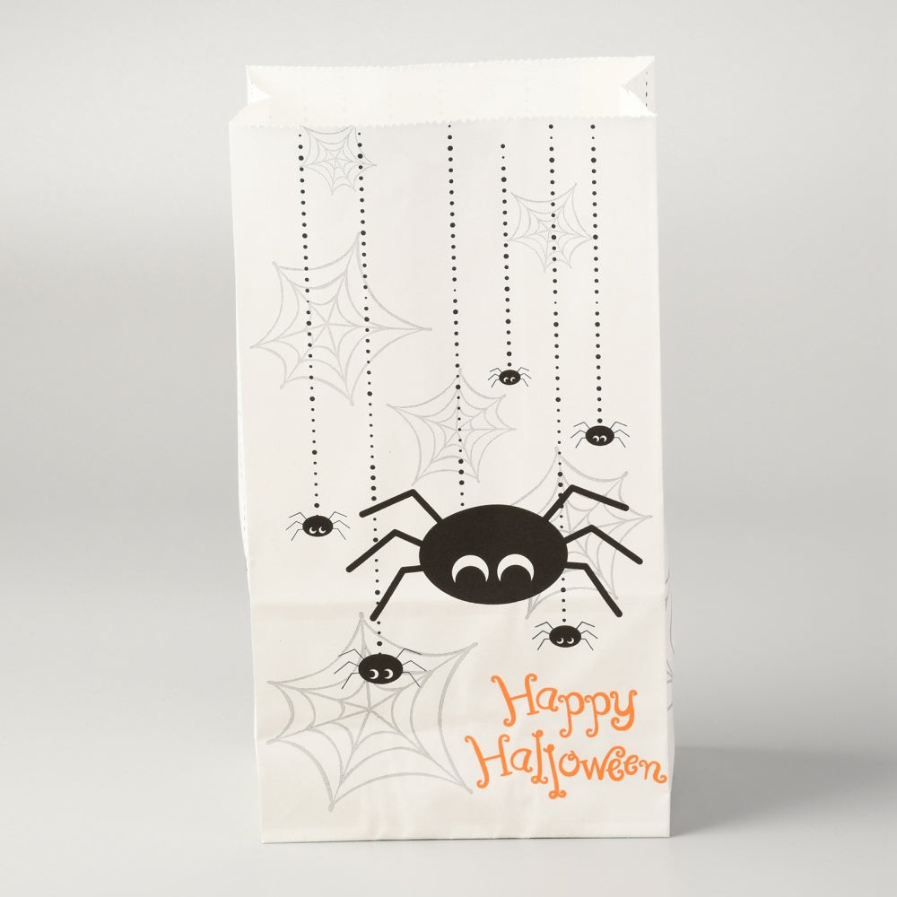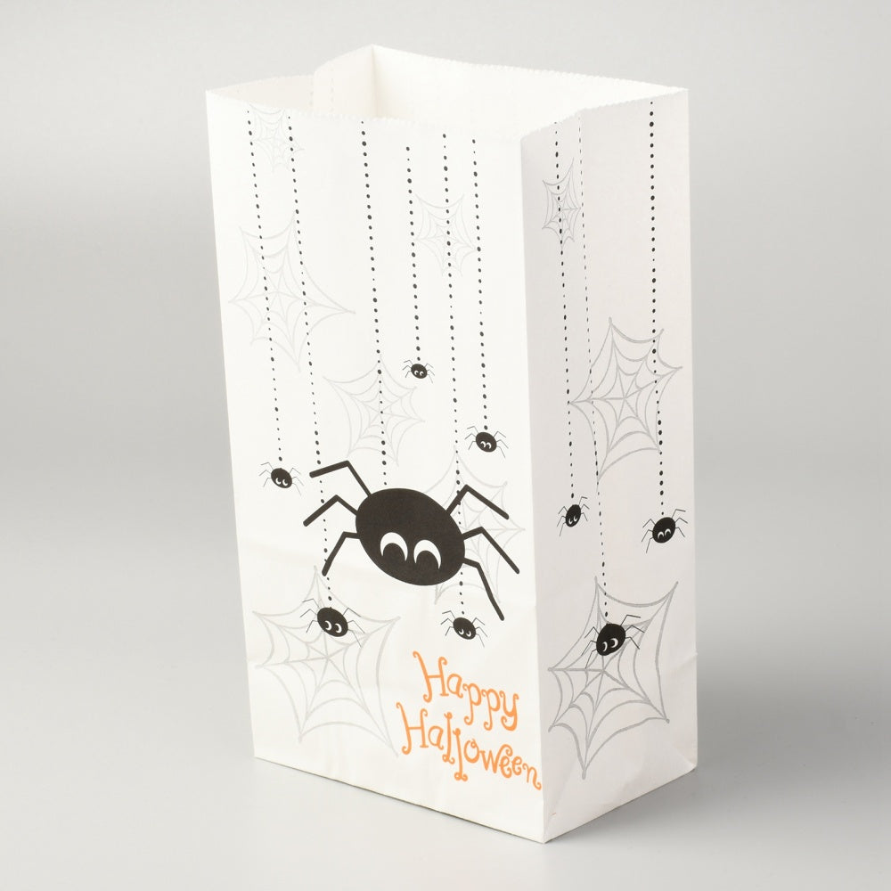 50 pc Halloween Theme Kraft Paper Bags, Gift Bags, Snacks Bags, Rectangle, Spider Pattern, 23.2x13x8cm