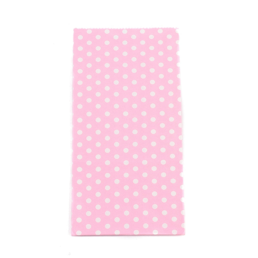 100 pc Kraft Paper Bags, No Handles, Storage Bags, White Polka Dot Pattern, Wedding Party Birthday Gift Bag, Pearl Pink, 17.8x9x6.2cm