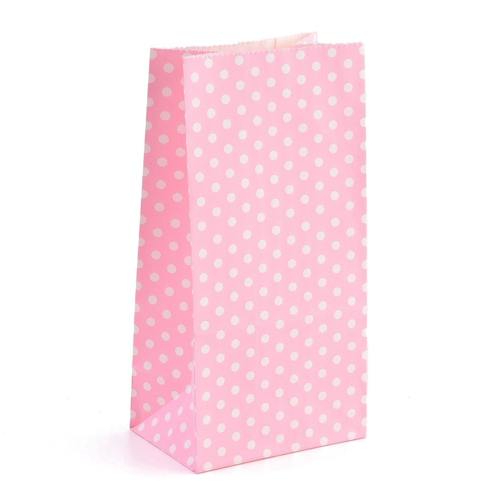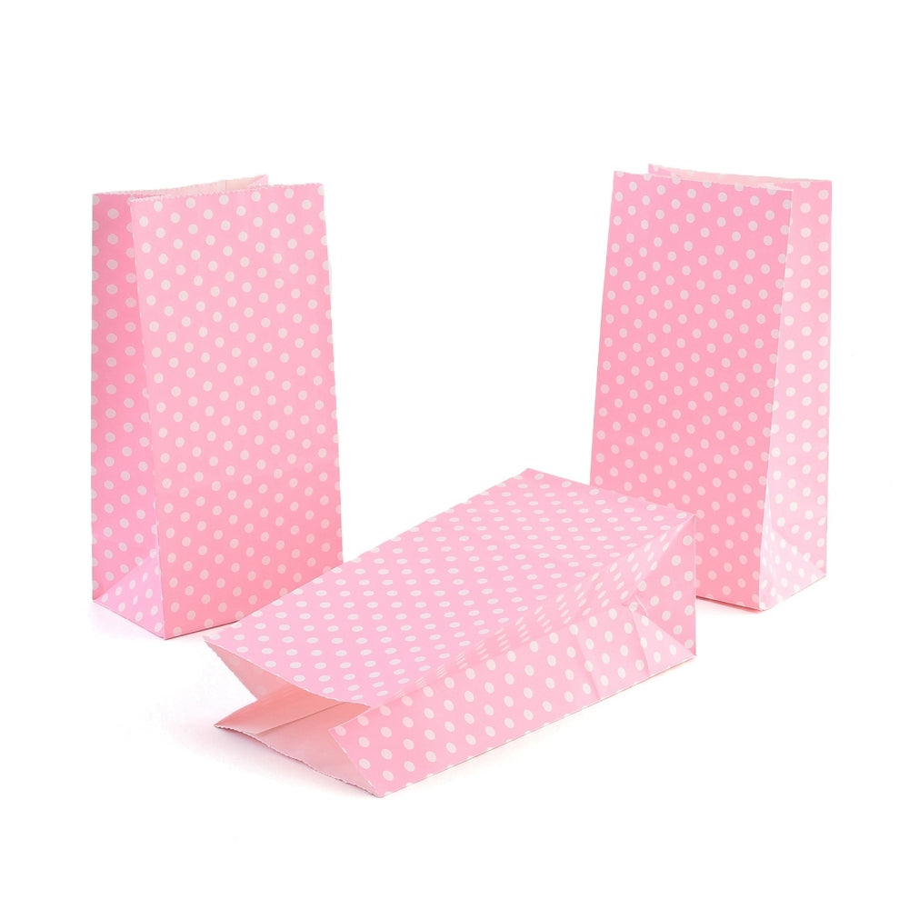 Kraft Paper Bags, No Handles, Storage Bags, White Polka Dot Pattern, Wedding Party Birthday Gift Bag, Pearl Pink