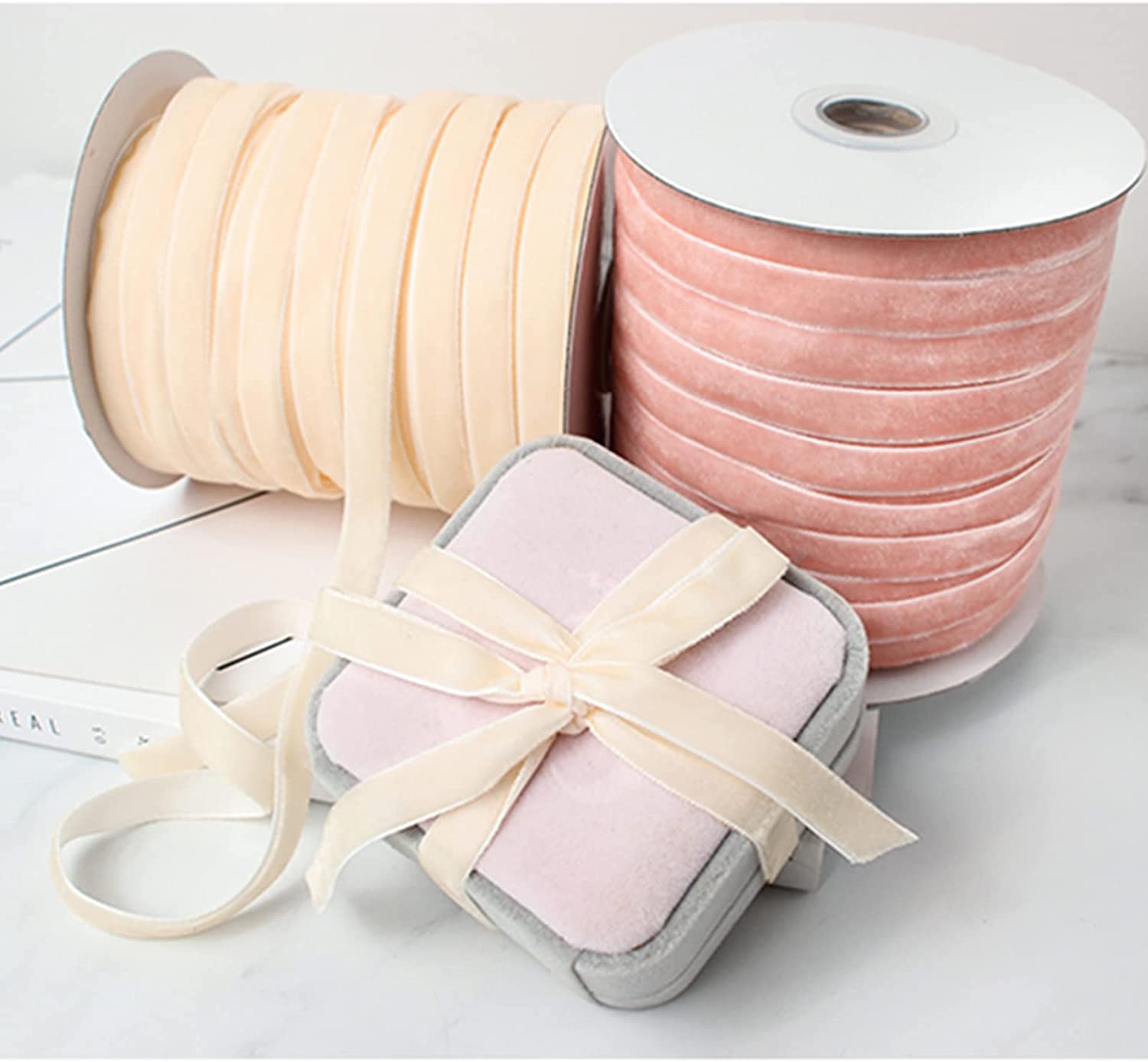 50 Yards Bisuqe Single Face Velvet Ribbon for Christmas Wedding Wrapping Crafts Decoration Favors