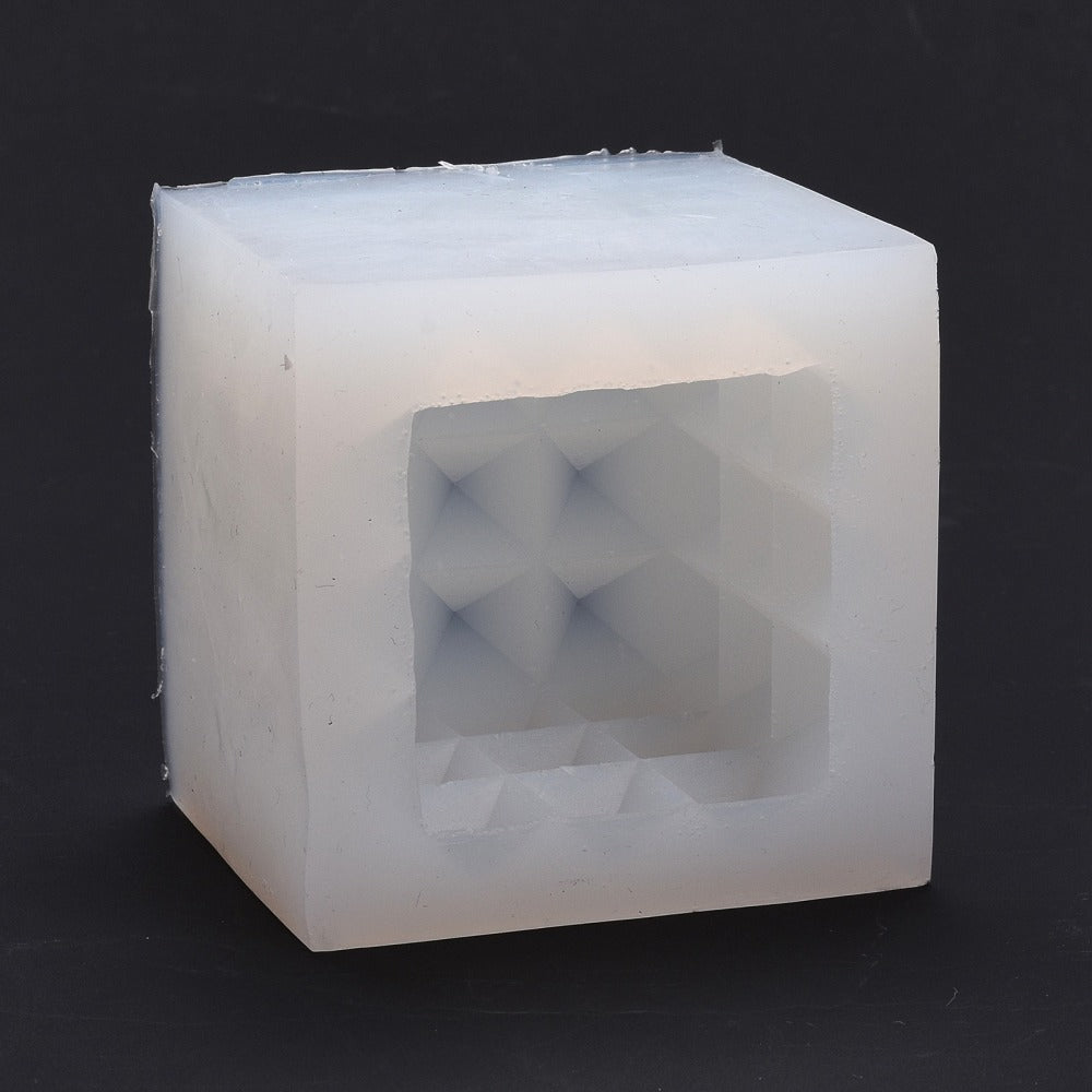 - Cuboid DIY Candle Silicone Molds with Diamond Shape Ball, , Handmade Soap Molds, Mousse Chocolate Cake Mold, White.