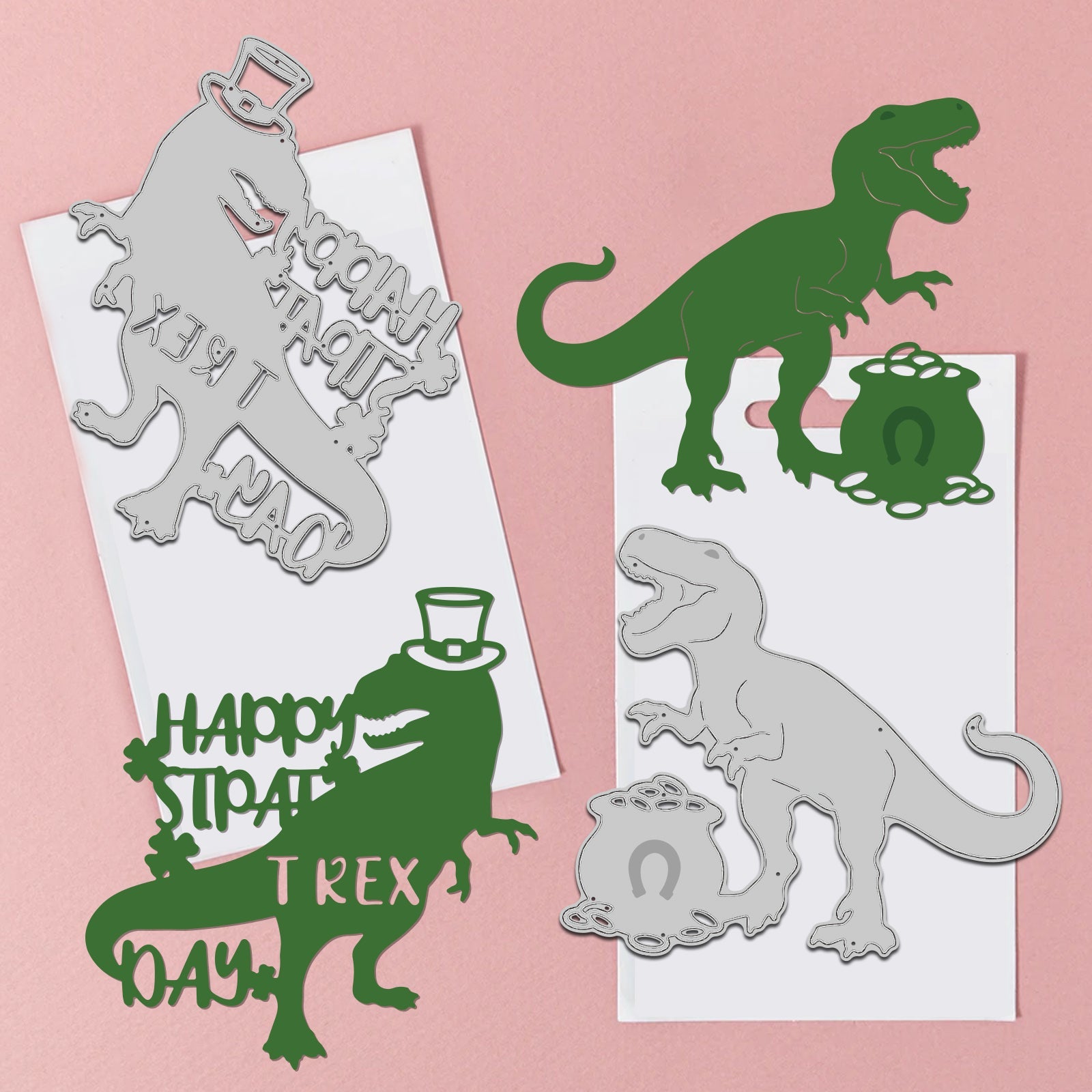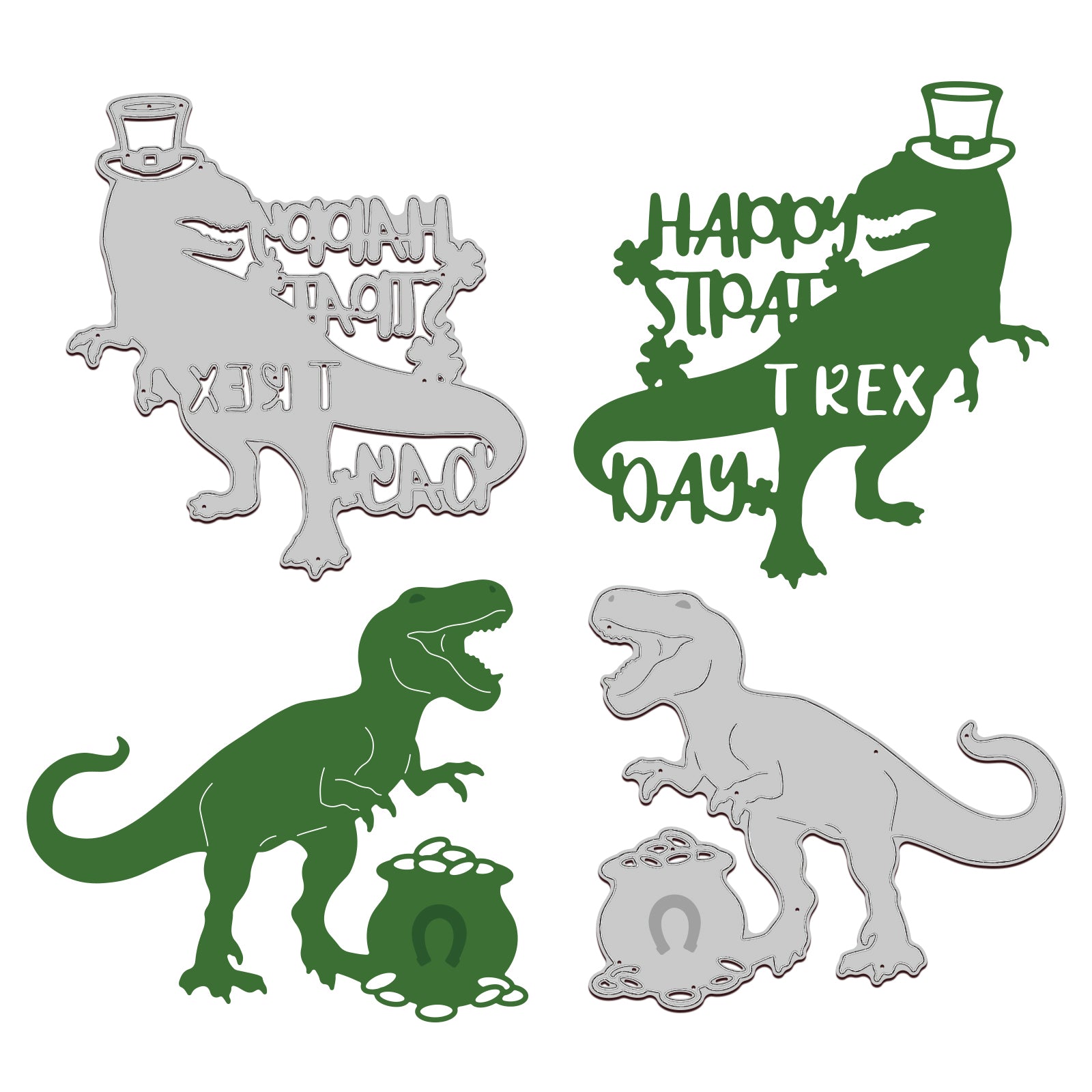 CRASPIRE Saint Patrick's Day Dinosaur Carbon Steel Cutting Dies Stencils, for DIY Scrapbooking/Photo Album, Decorative Embossing DIY Paper Card