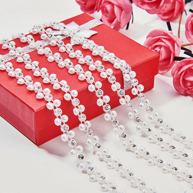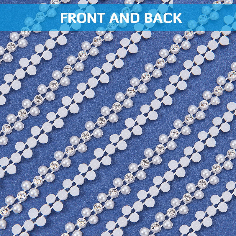 Plastic Imitation Pearl Beaded Trim Garland Strand, Great for Door Curtain, Wedding Decoration DIY Material, with Rhinestone, Flower, Floral White