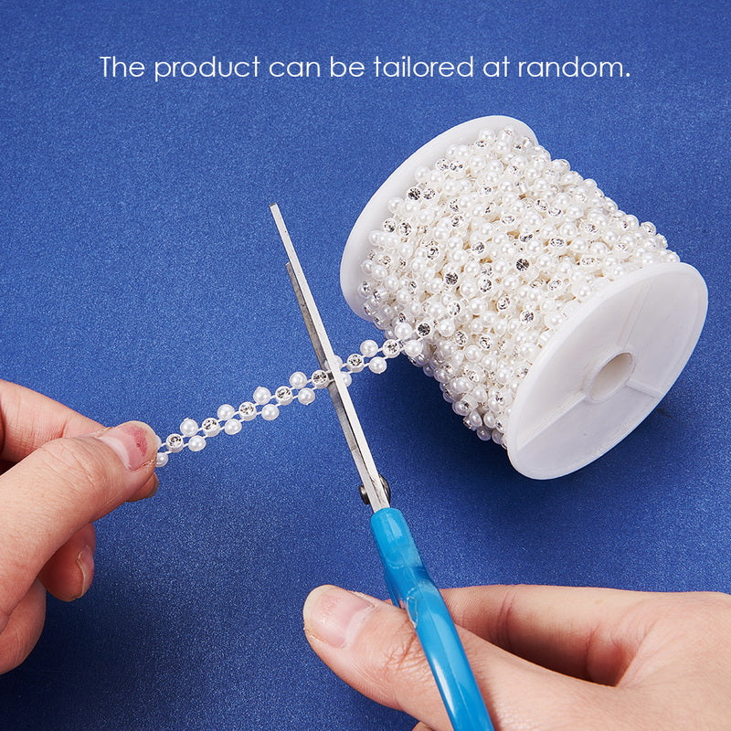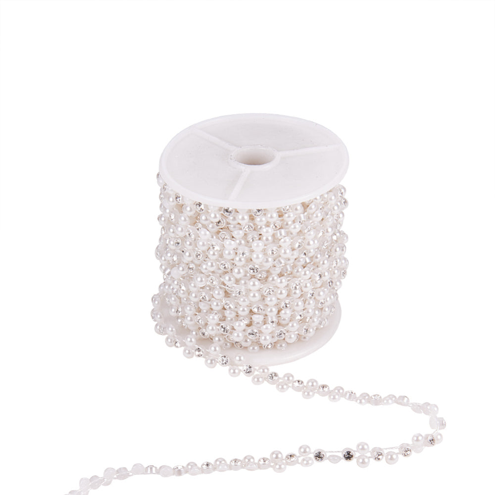 1 Roll Flower Plastic Imitation Pearl Beaded Trim Garland Strands, with Spool, Glass Rhinestones, for Wedding, White, 9x3mm, about 10yards/roll