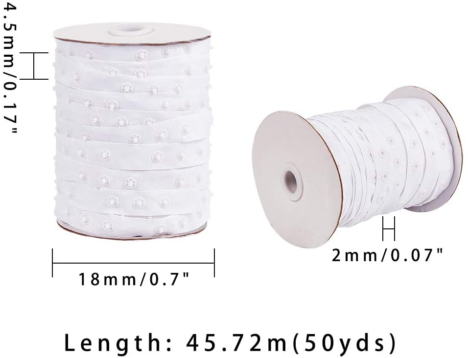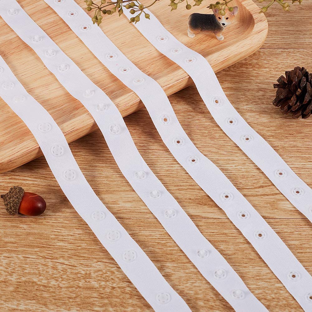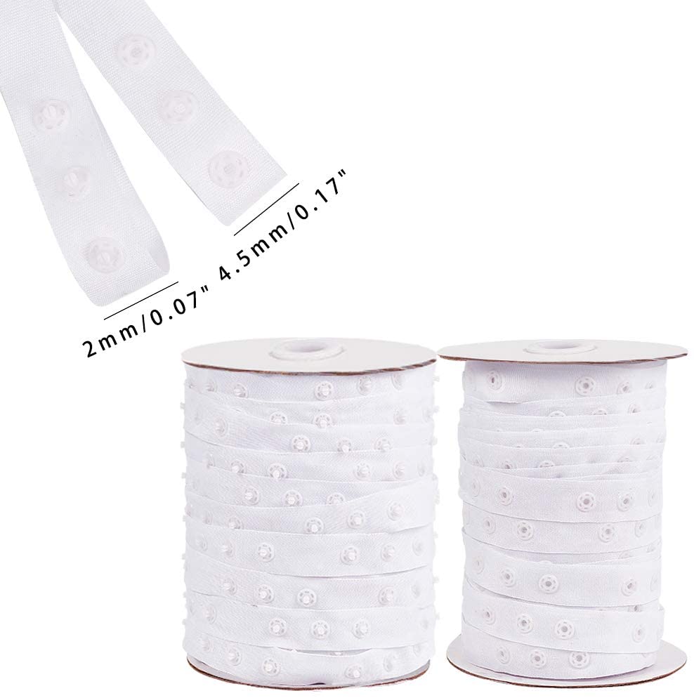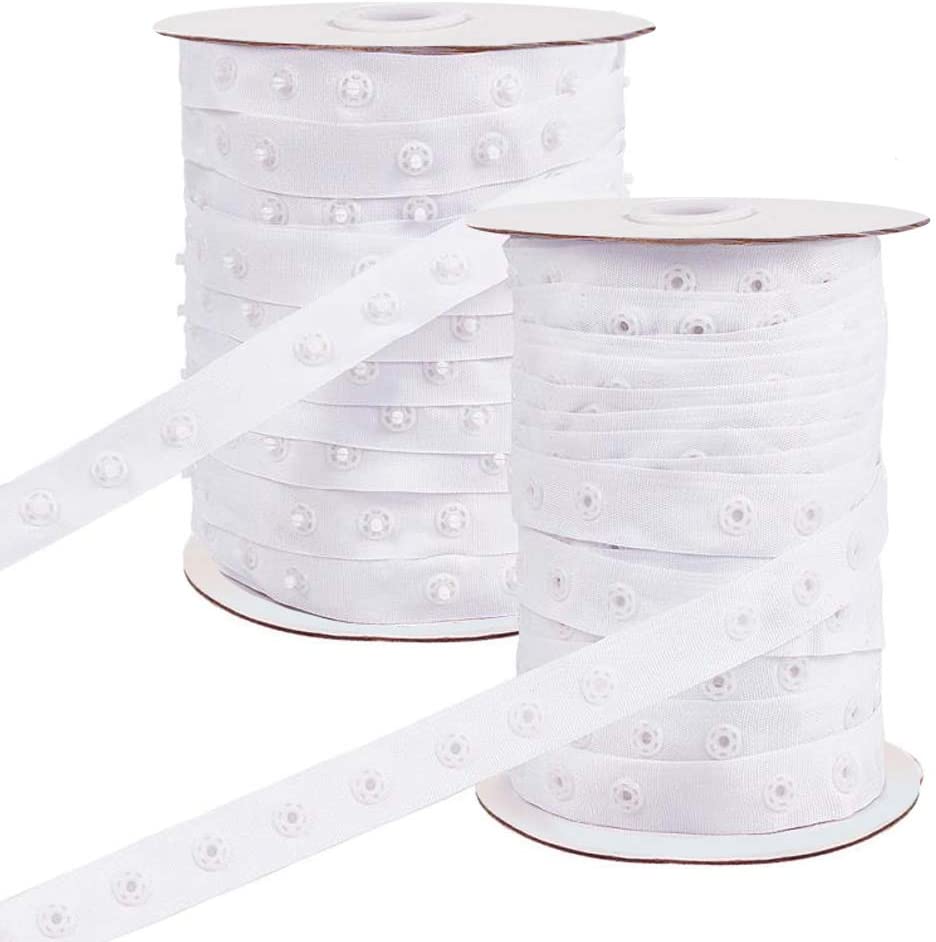 2 Rolls 50 Yard/Roll Polyester Sewing Snap Fastener Tape Snap Ribbon Zipper Fasteners with Plastic Buttons for Sewing DIY Accessories, White