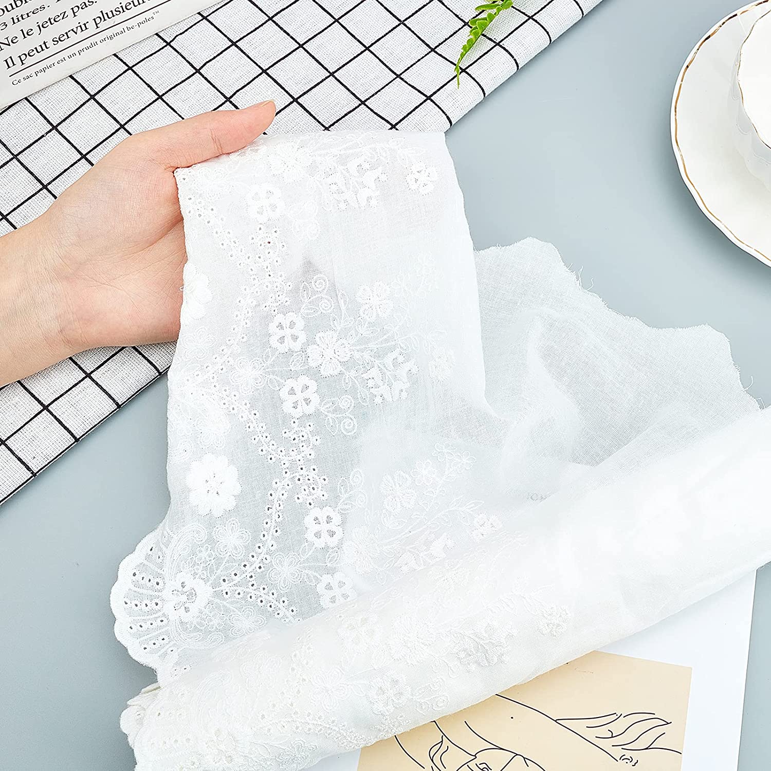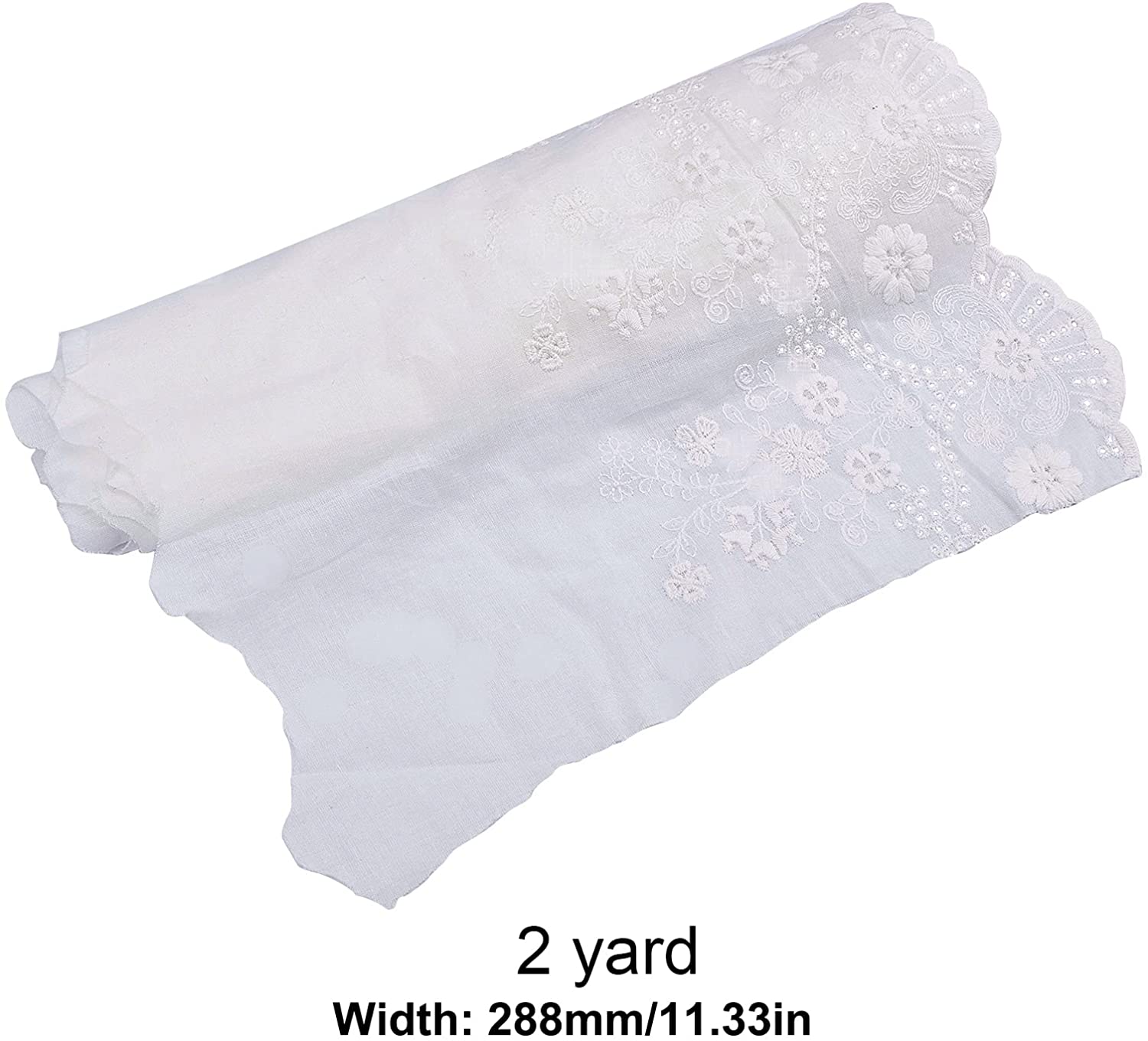 2 Yards Lace Roll White Cotton Lace Trim Fabric 11.33 Wide for Scalloped Edge Decorations for Dress Tablecloth Curtain Hair Band