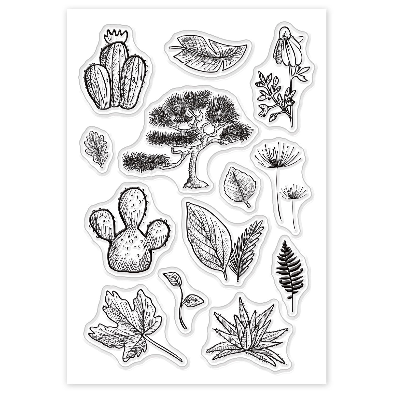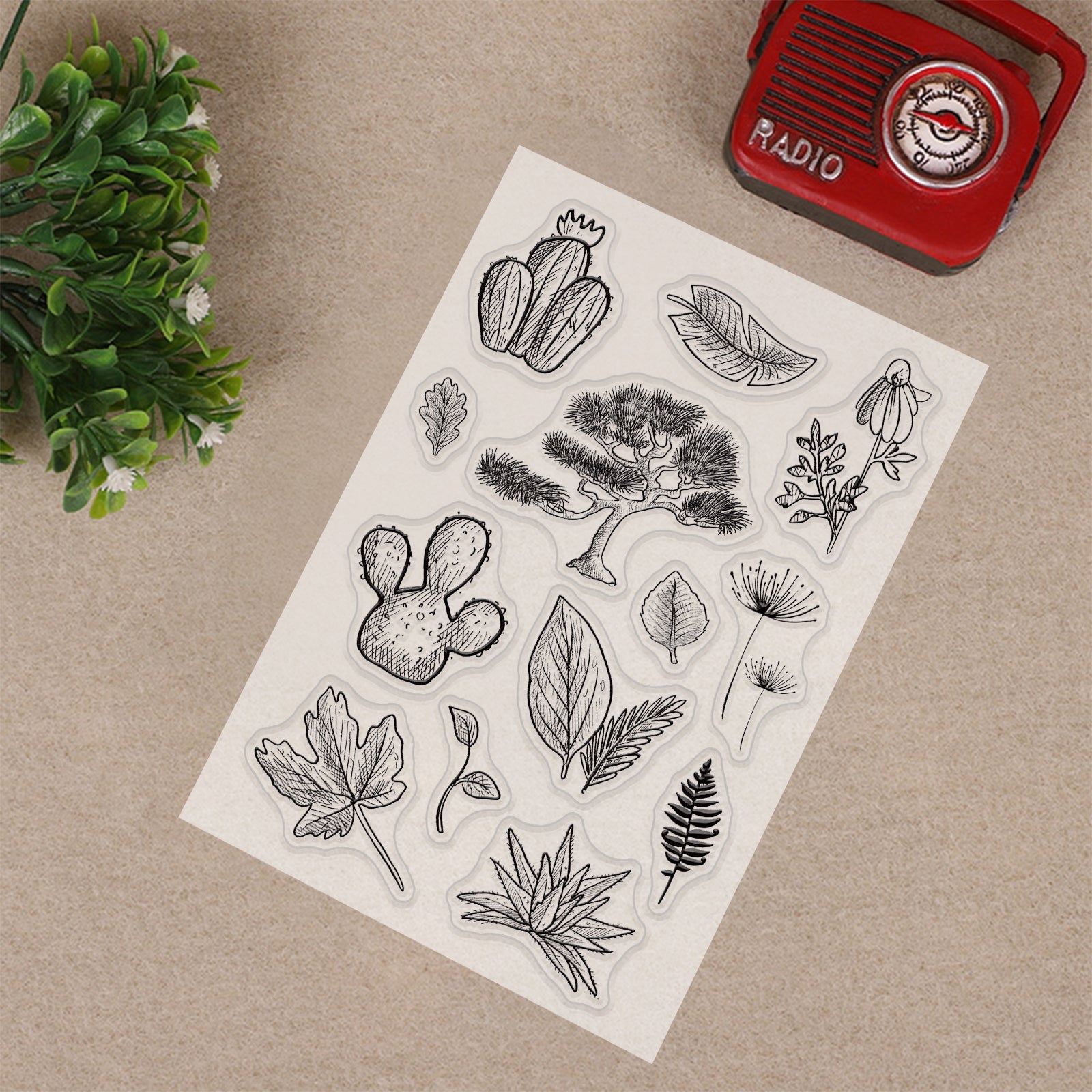Craspire Plant Clear Stamp Silicone Stamp Cards Cactus Pine Palm Leaf Stamp Transparent Seals for Card Making Decoration and DIY Scrapbooking
