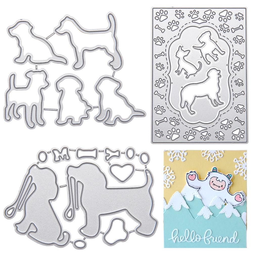 CRASPIRE 3pcs Metal Frame Cutting Dies Dog Bone Dog Paw Print Carbon Steel Embossing Stencil Template Mould for DIY Card Making Scrapbooking Paper Craft Photo Album