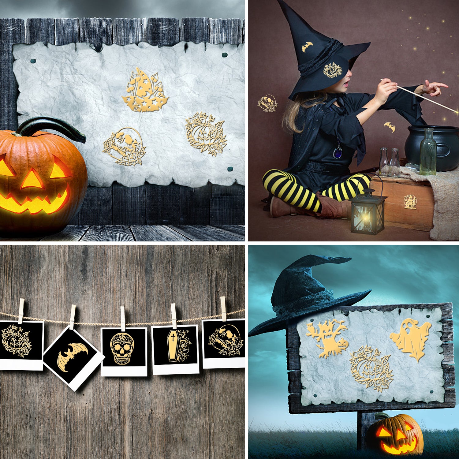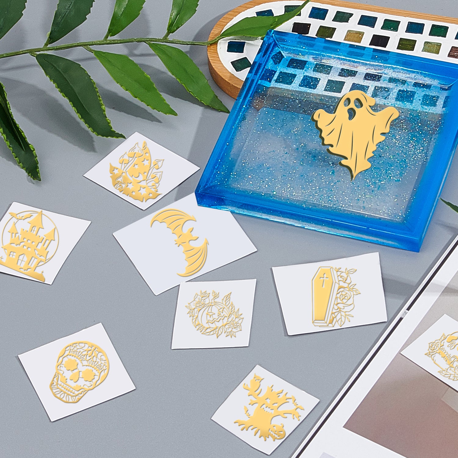 9Pcs 9 Styles Custom Carbon Steel Self-adhesive Picture Stickers, Square, Halloween Themed Pattern, 40x40mm, 1pc/style