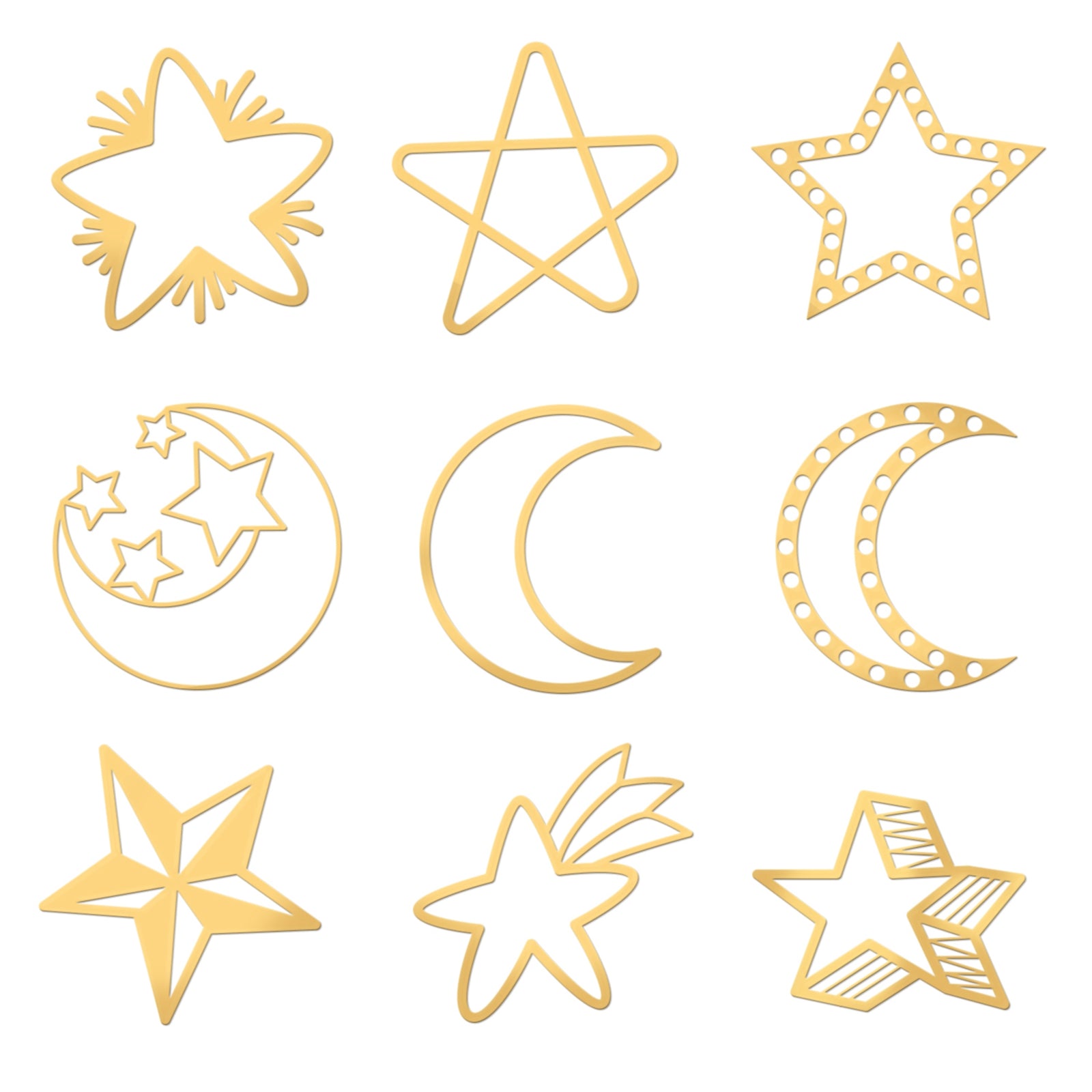 9Pcs 9 Styles Custom Carbon Steel Self-adhesive Picture Stickers, Star Pattern, 40x40mm, 1pc/style.