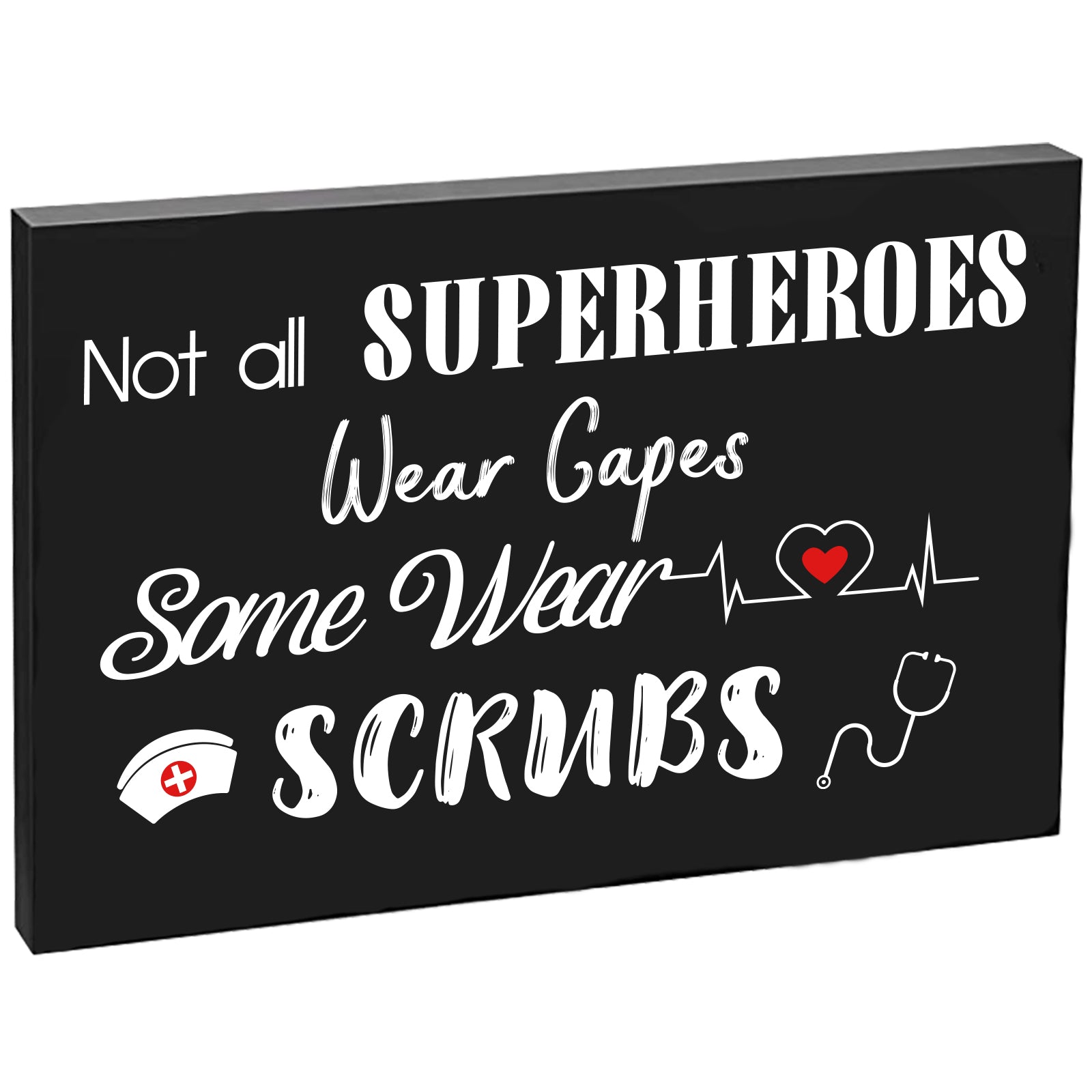 • WALL DECOR SIGNS: Not All SUPERHEROES Wear Capes Some Wear Scrubs. The desktop decor measures 7.87 x 5.12 x 0.6 inch, appropriate size for people to clearly see these words on the ornament.