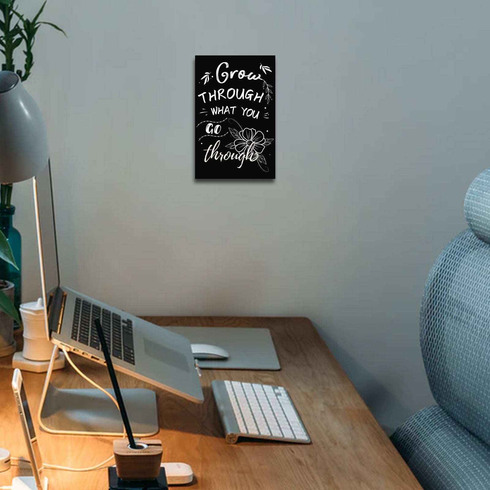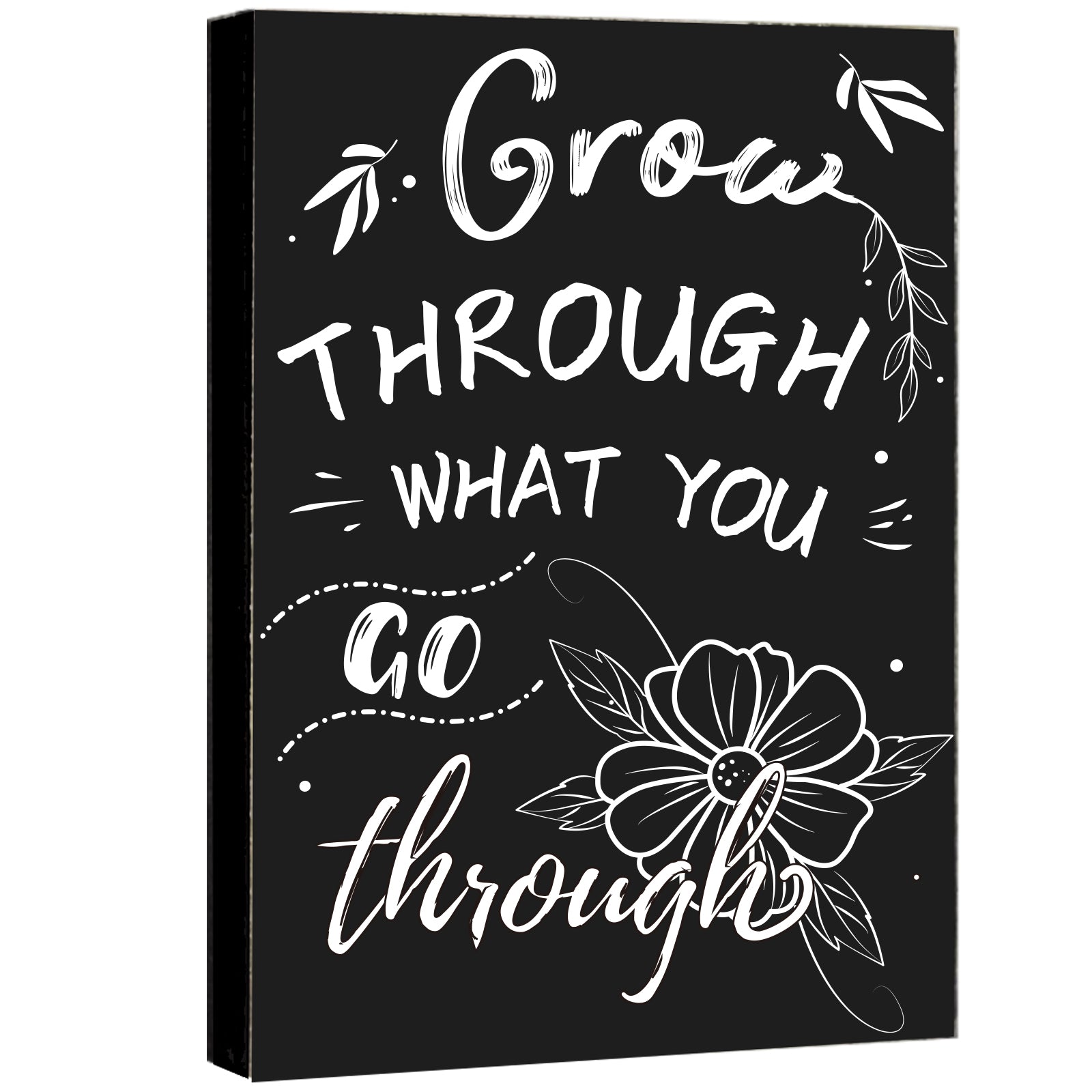 • WALL DECOR SIGNS: Grow Through What You Go Through. The desktop decor measures 7.87 x 5.12 x 0.6 inch, appropriate size for people to clearly see these words on the ornament.