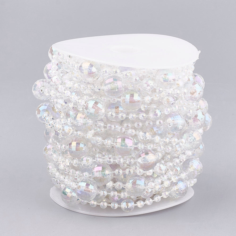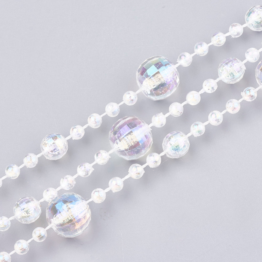1 Roll Plastic Beaded Trim Garland Strand, Great for Door Curtain, Wedding Decoration DIY Material, Faceted Round, Clear AB, 7~12mm and 4mm, about 10m/roll