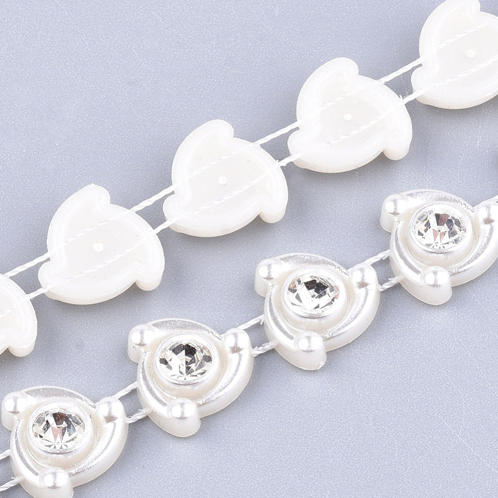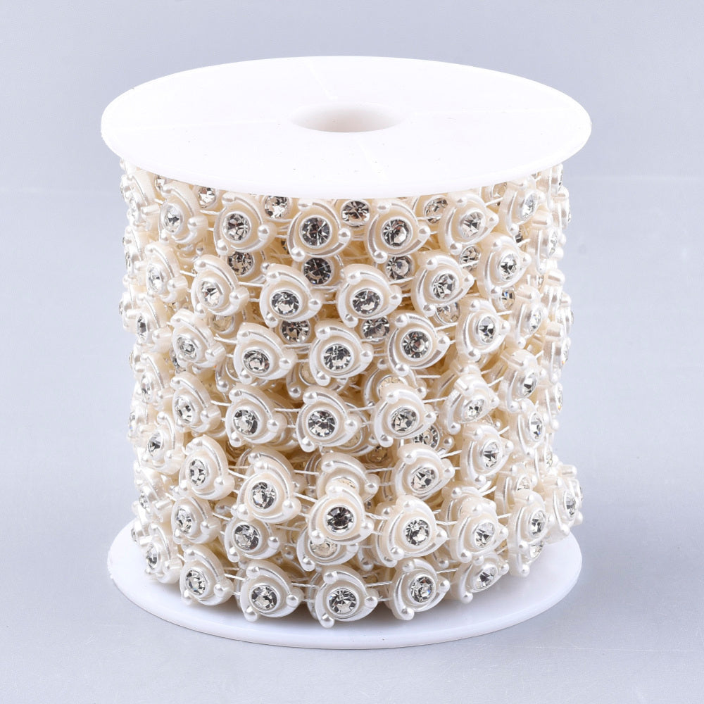 1 Roll Plastic Imitation Pearl Beaded Trim Garland Strand, Great for Door Curtain, Wedding Decoration DIY Material, with Rhinestone, Flower, Floral White, 12x4.5mm, 10yards/roll