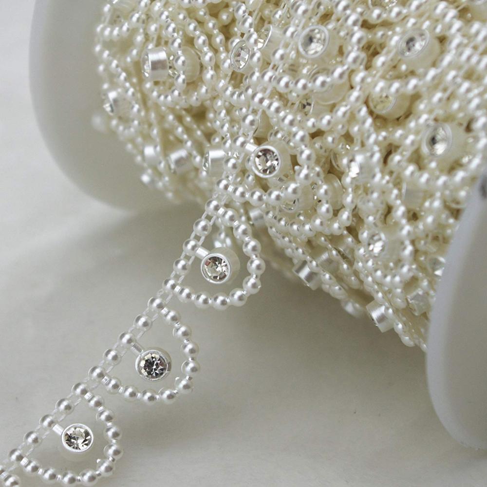 Plastic Imitation Pearl Beaded Trim Garland Strand, Great for Door Curtain, Wedding Decoration DIY Material, Heart and Round, White