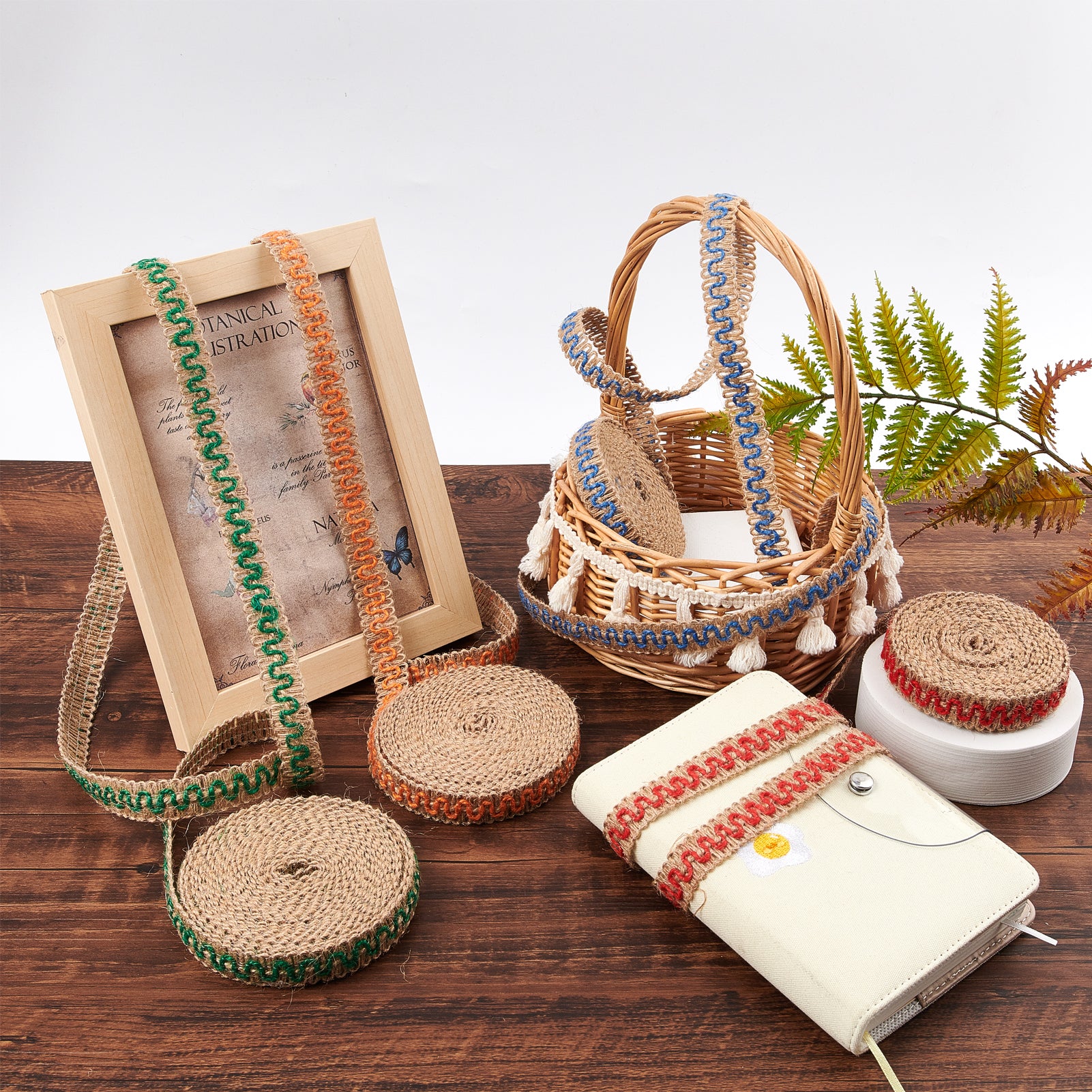 Hemp Ribbons, Jute Ribbons, for Christmas Craft Making, Mixed Color, 5/8 inch(17mm); about 5m/roll, 4 colors, 1roll/color, 4rolls/set