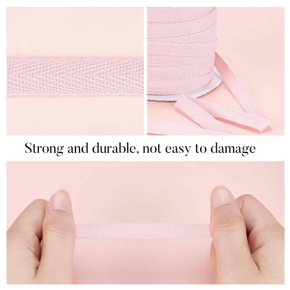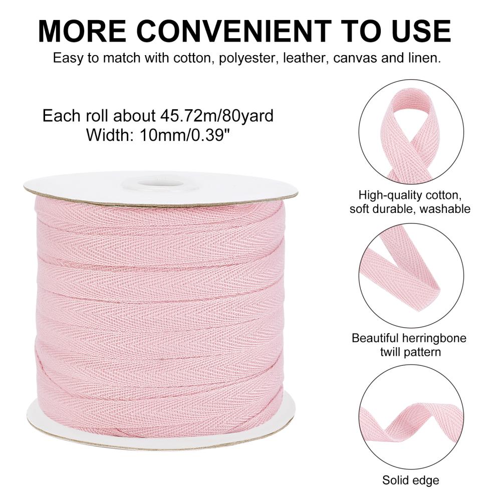 1 Roll Cotton Twill Tape Ribbons, Herringbone Ribbons, for Sewing Craft, Pink, 3/8 inch(10mm), about 80yards/roll(73.15m/roll)