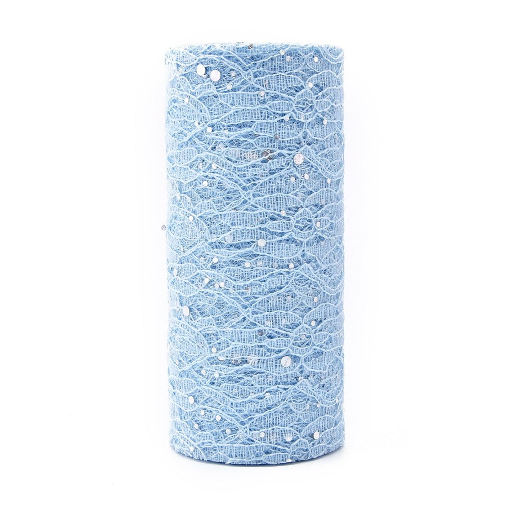 5 Roll Glitter Sequin Deco Mesh Ribbons, Tulle Fabric, for Wedding Party Decoration, Skirts Decoration Making, Light Blue, 6 inch(150mm), 10yards/roll