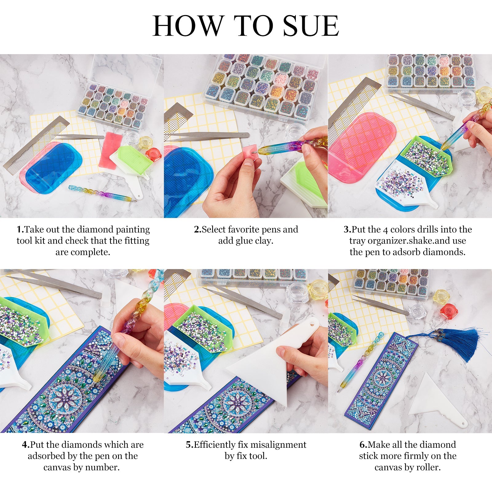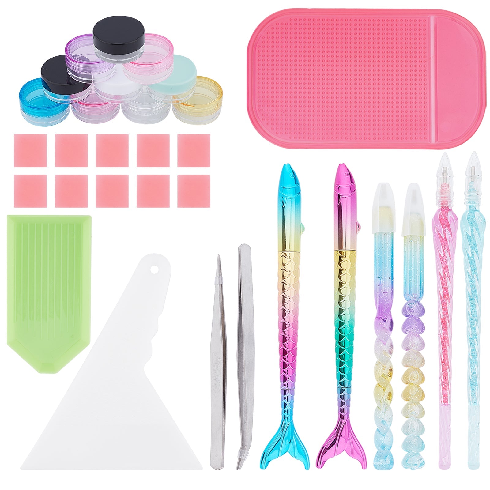 DIY Diamond Painting kits, Include Plastic Single Head Nail Art Rhinestones Pickers Pen, Plastic Scraper Tool & Cosmetics Cream Jar, Stainless Steel Beading Tweezers and Tray Plate, Mixed Color