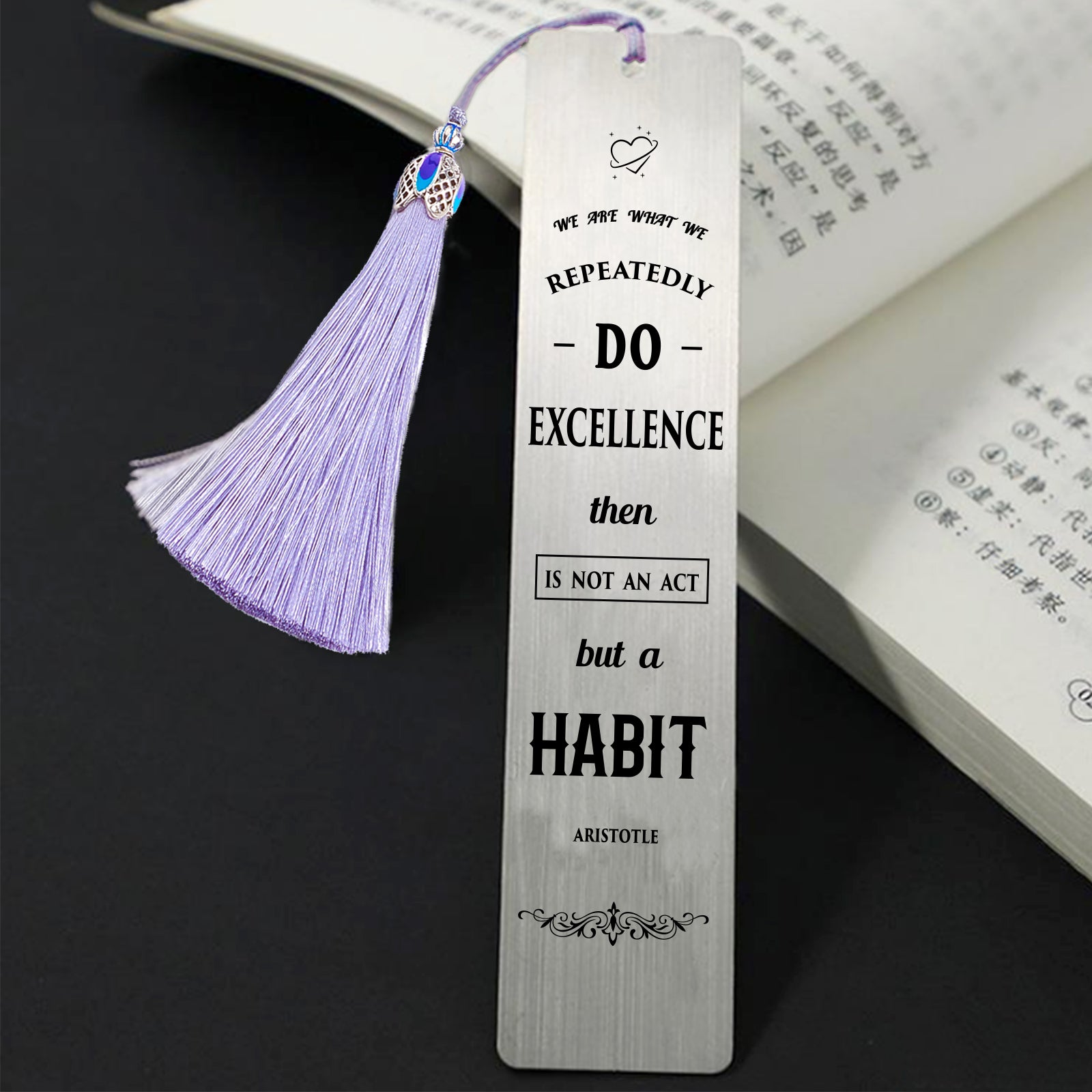 - 2Pcs 2 Style Stainless Steel Bookmarks, Rectangle, with Nylon Tassel Big Pendant Decorations, Stainless Steel Color.