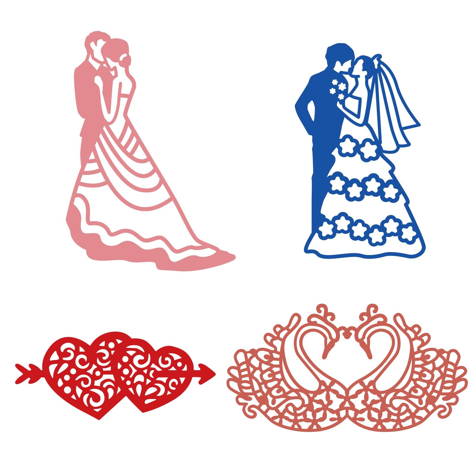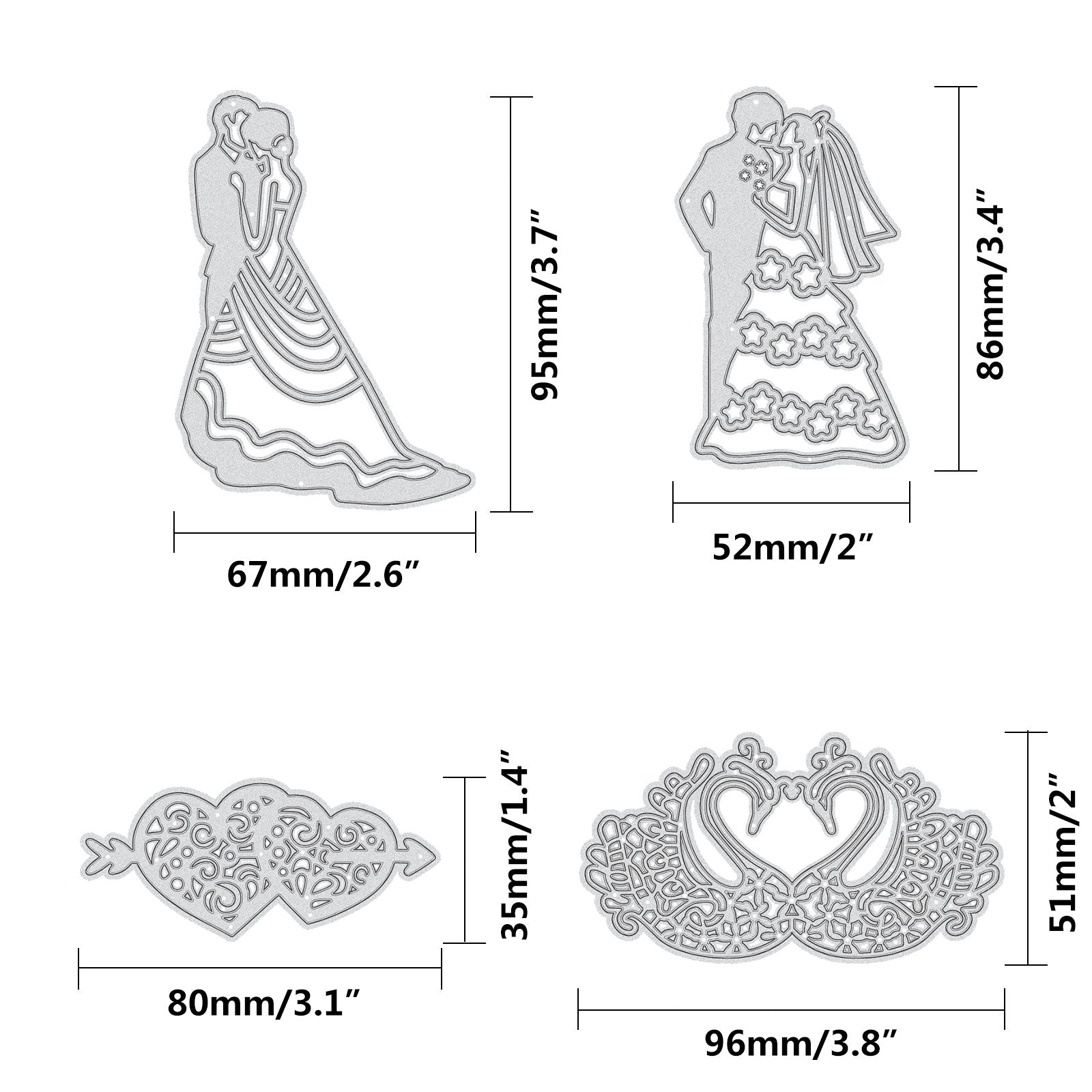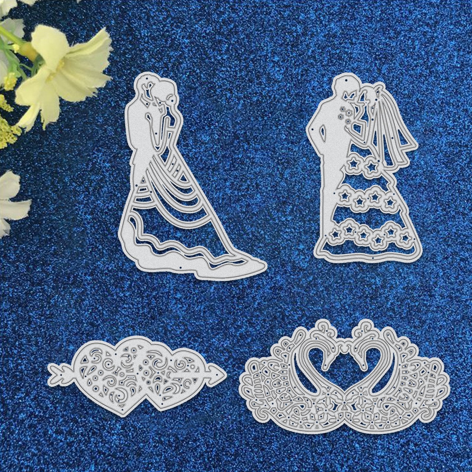 CRASPIRE 4pcs Bride and Groom Wedding Metal Cutting Dies Mandarin Duck and An Arrow Pierces the Heart Cutting Dies Stencils for DIY Scrapbooking Album Decorative Paper Dies Card