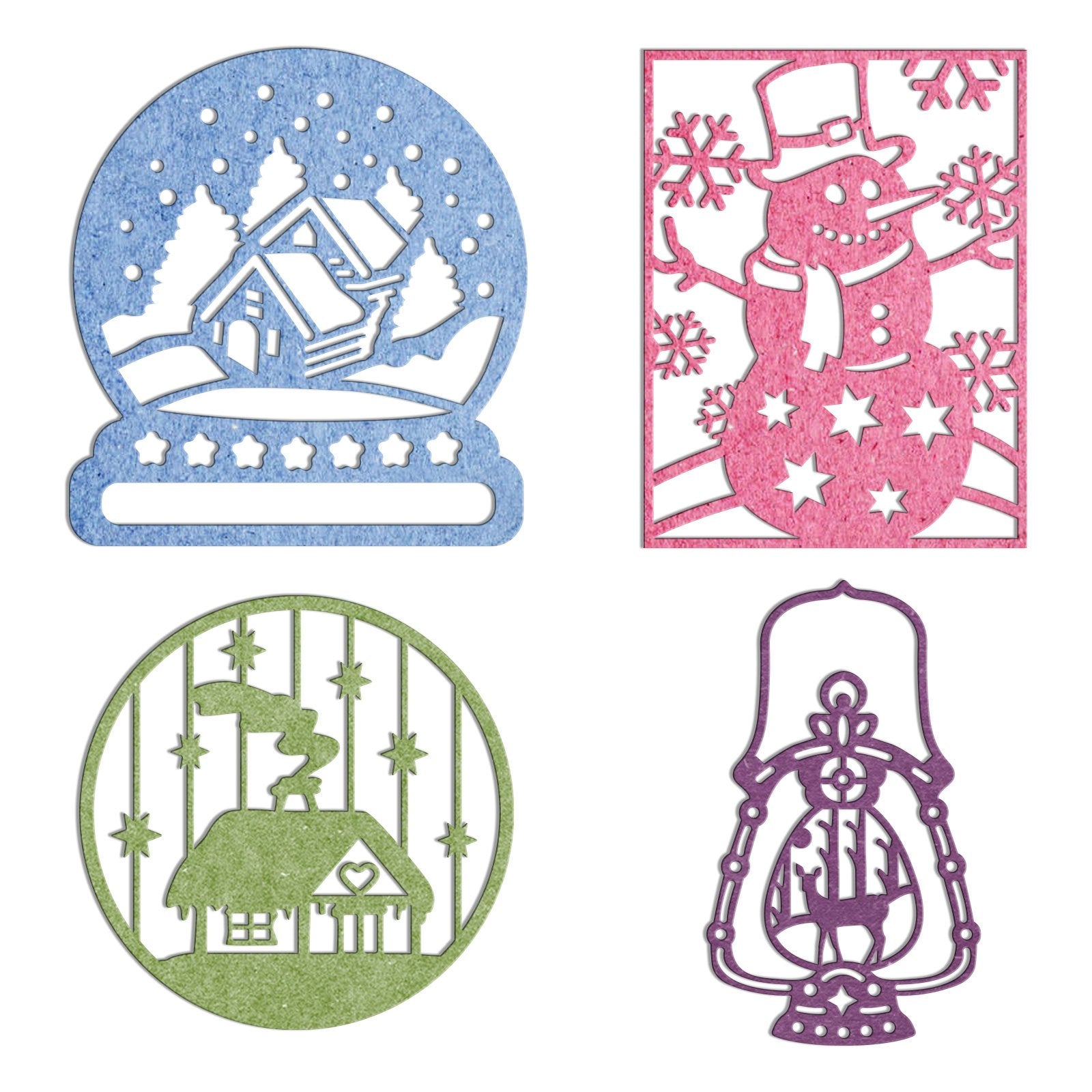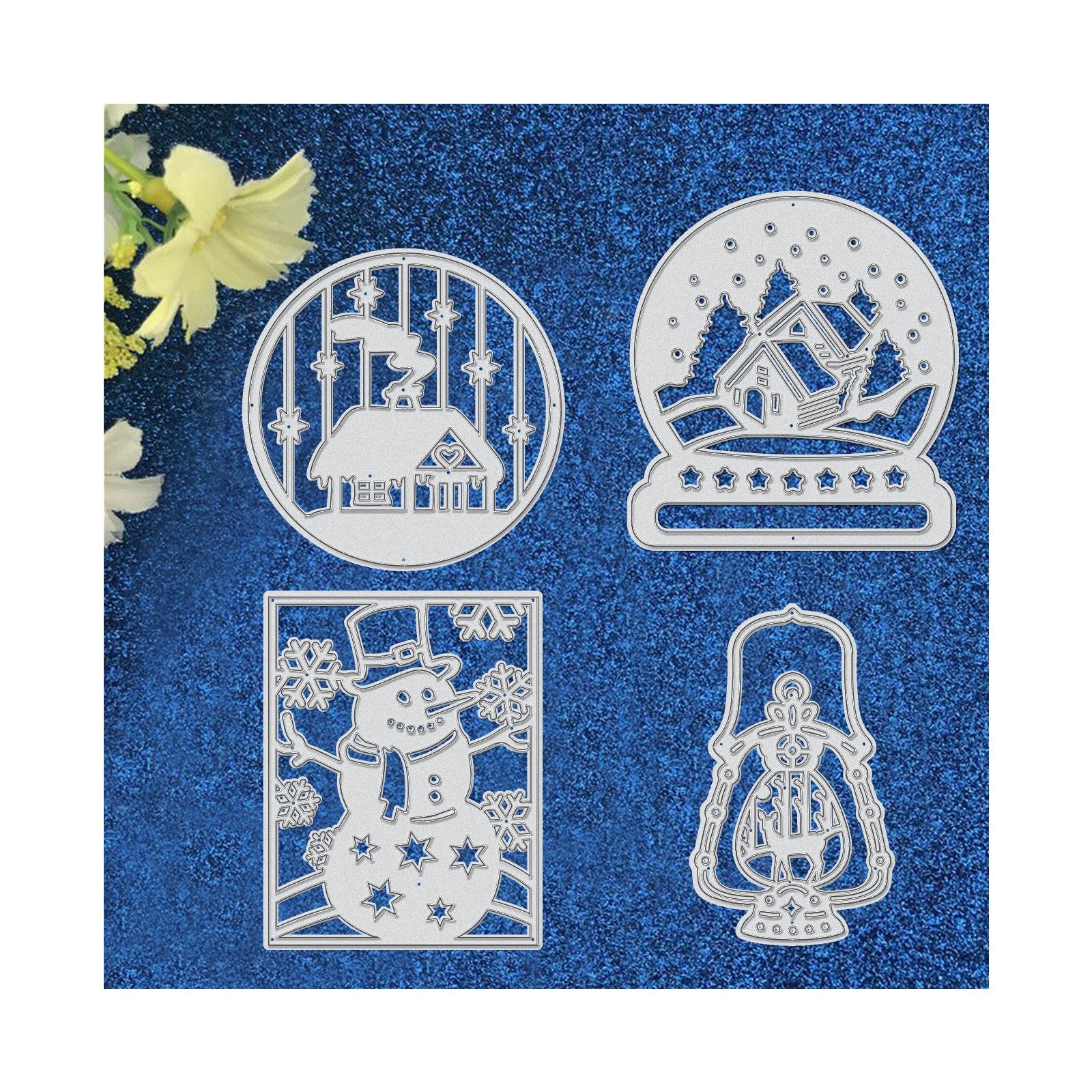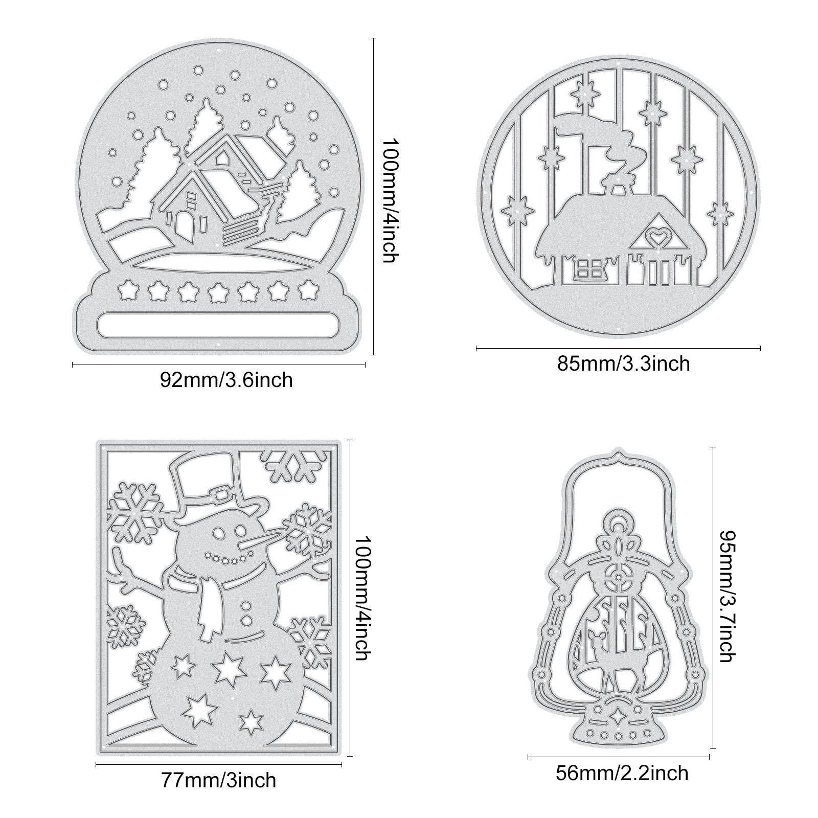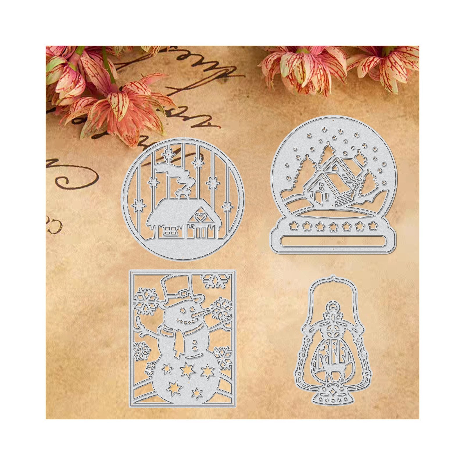 CRASPIRE 4Pcs Metal Winter Cutting Dies Christmas Snow Globe Snowman House Lights Stencil Template for Scrapbook Embossing Album Paper Card Craft Festival Decor, Matte Platinum