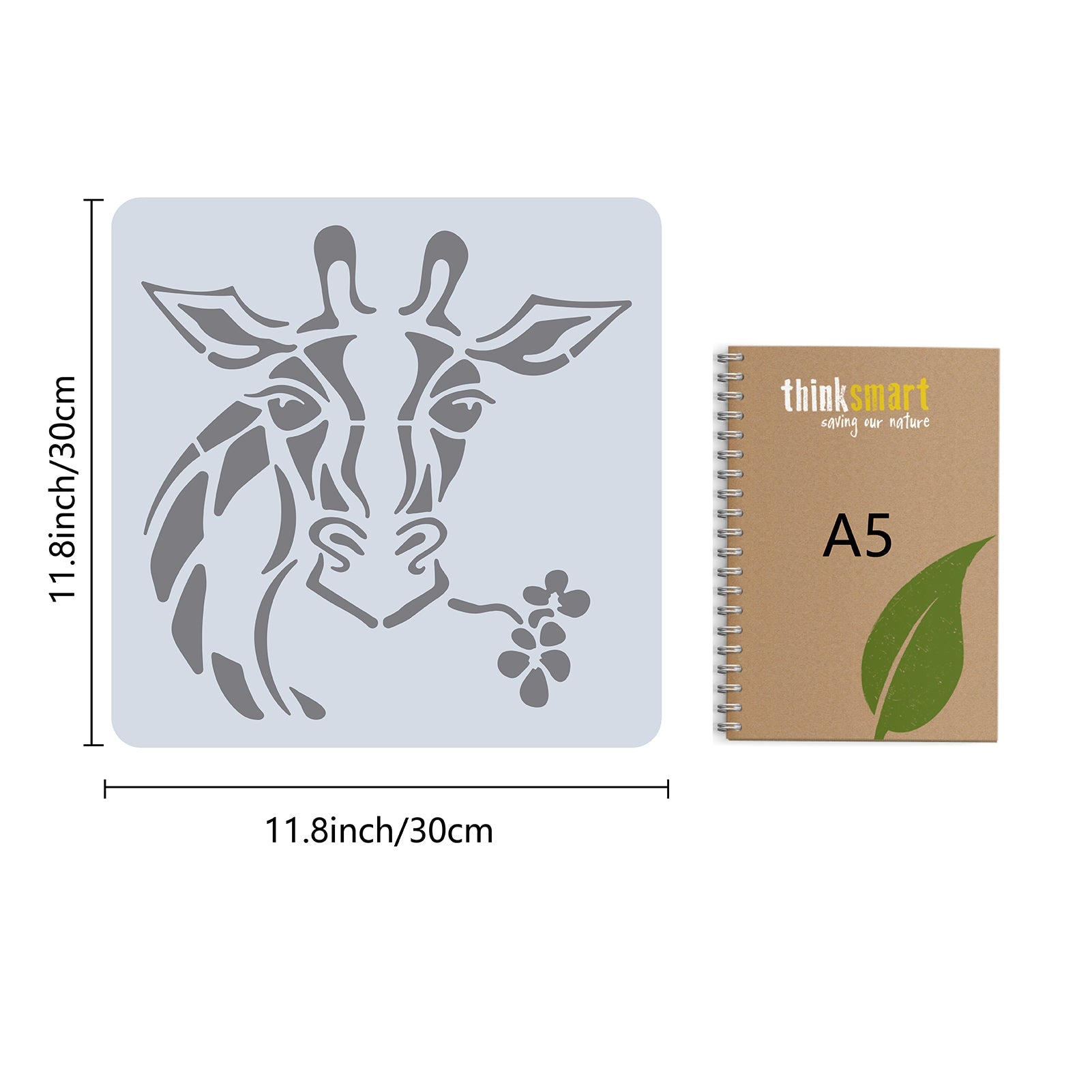 CRASPIRE PET Plastic Drawing Painting Stencils Templates, Square, White, Giraffe Pattern, 30x30cm