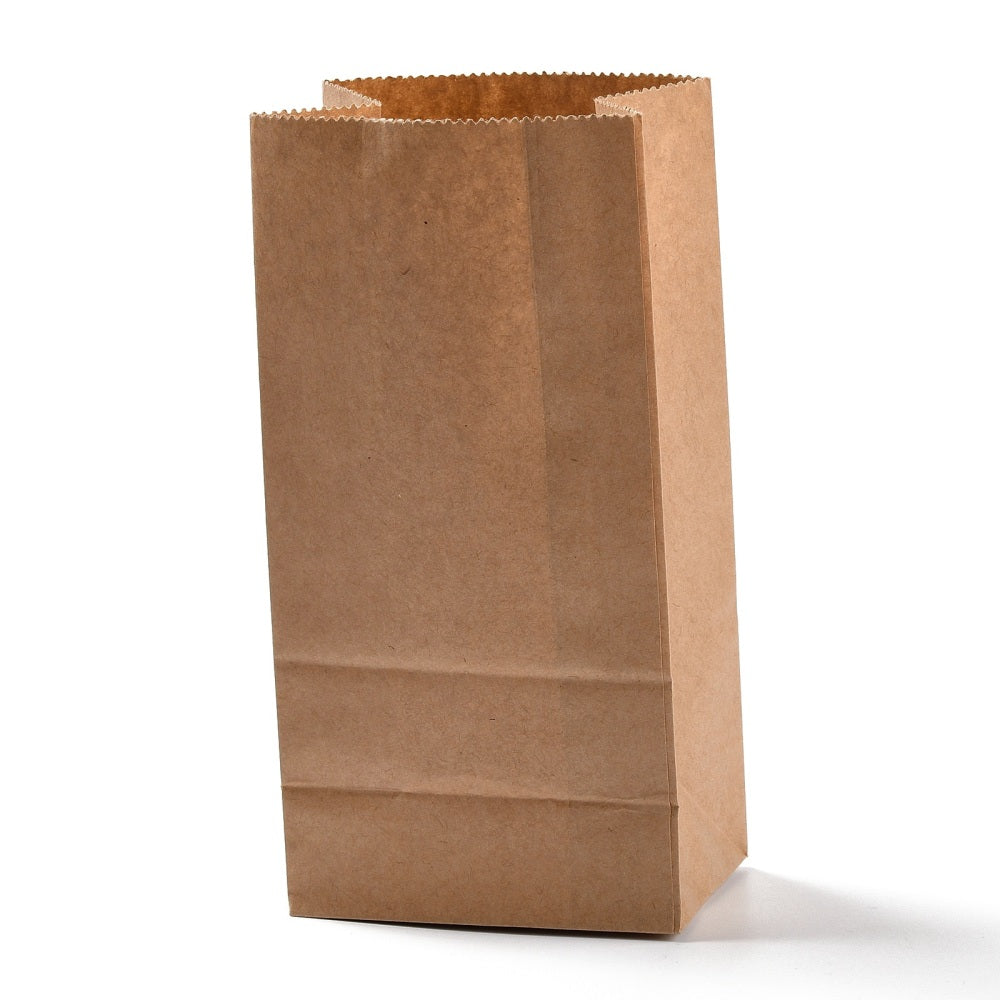 100 pc Rectangle Kraft Paper Bags, None Handles, Gift Bags, BurlyWood, 9.1x5.8x17.9cm