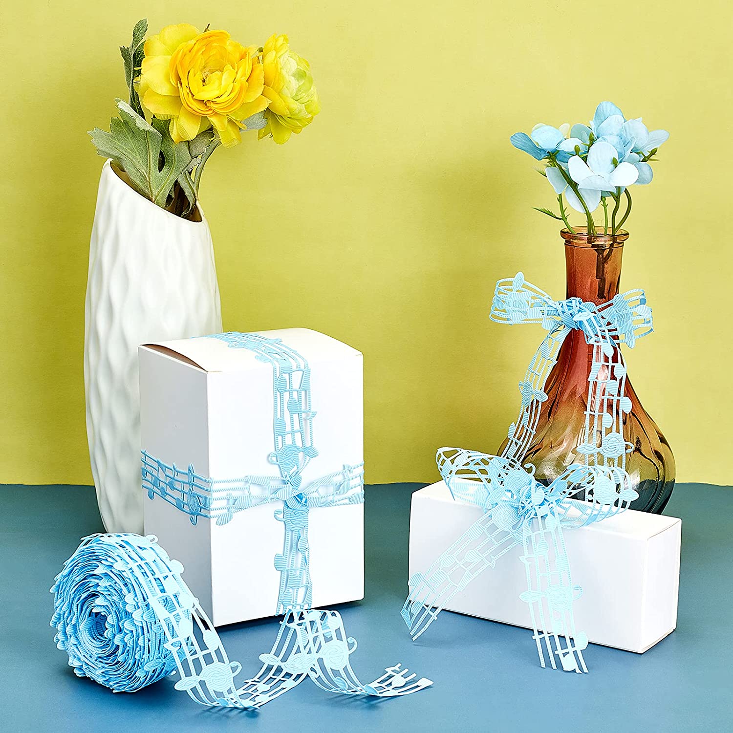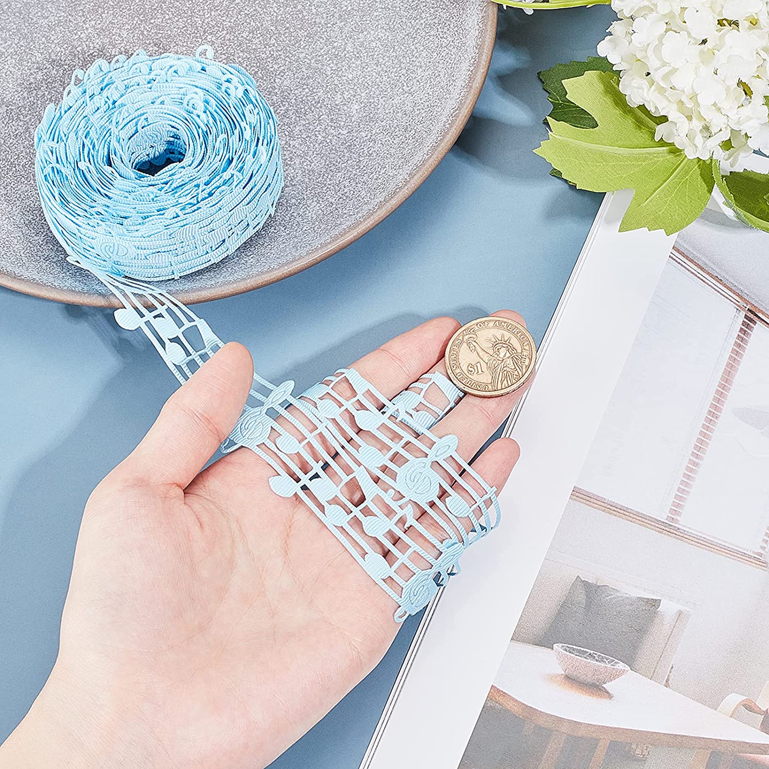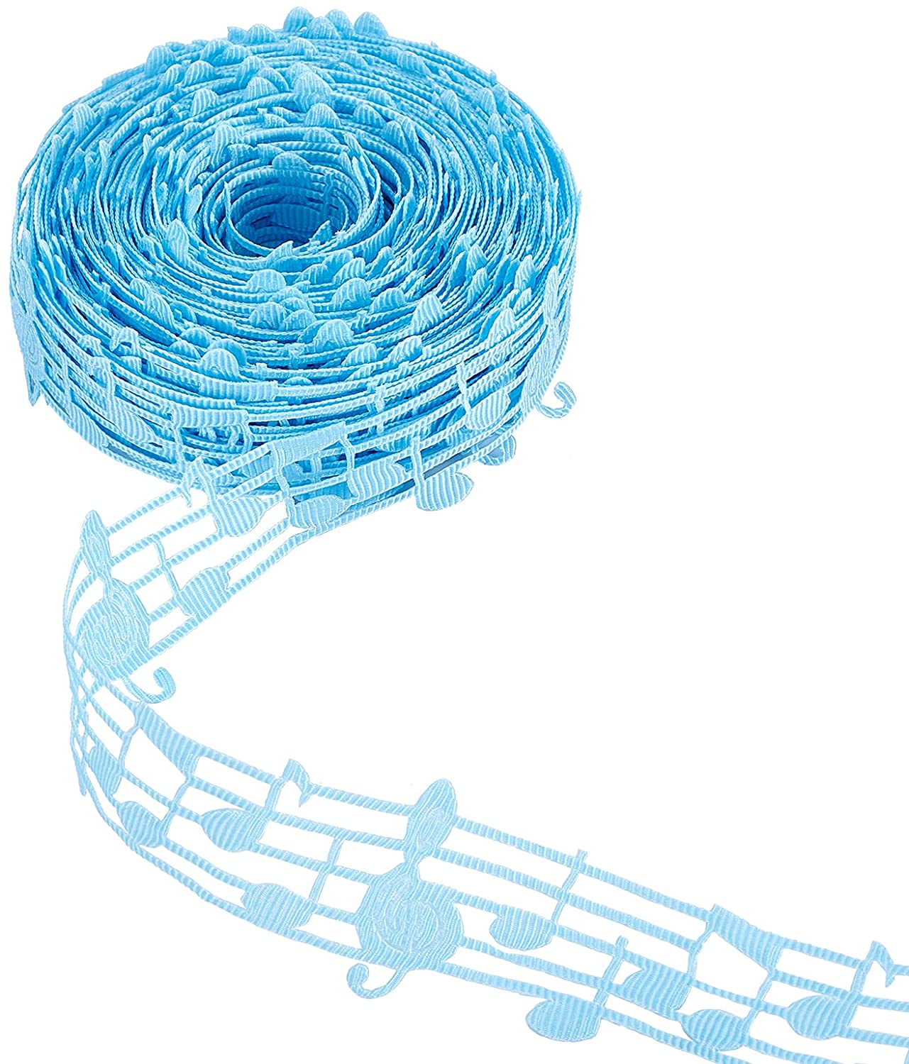 10 Yards 29mm Hollow Music Note Ribbon Polyester Engraved Grosgrain Ribbon Clothing Trim Accessories for Scrapbooking DIY Gift Wrapping Decoration, Sky Blue