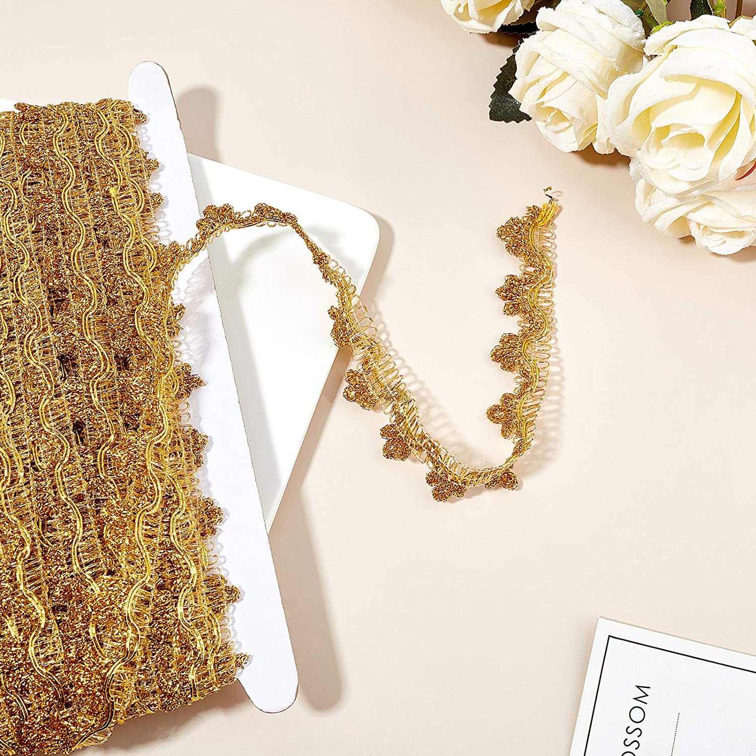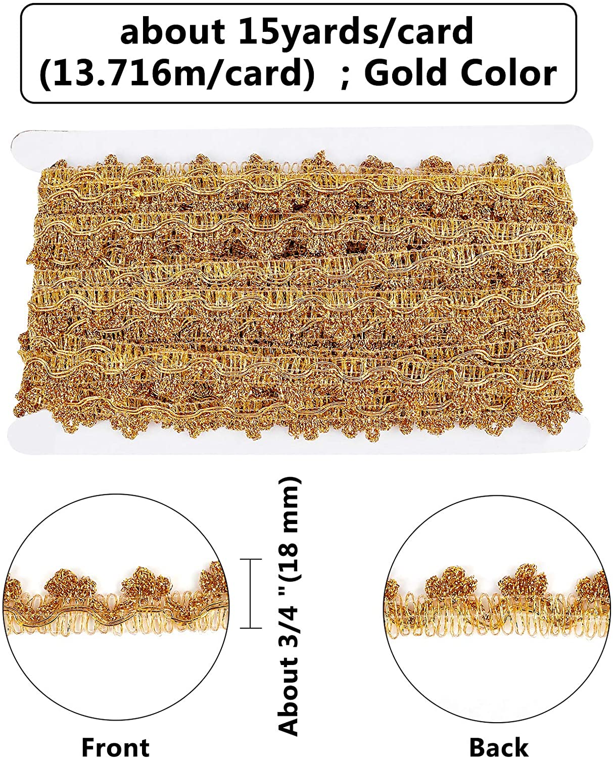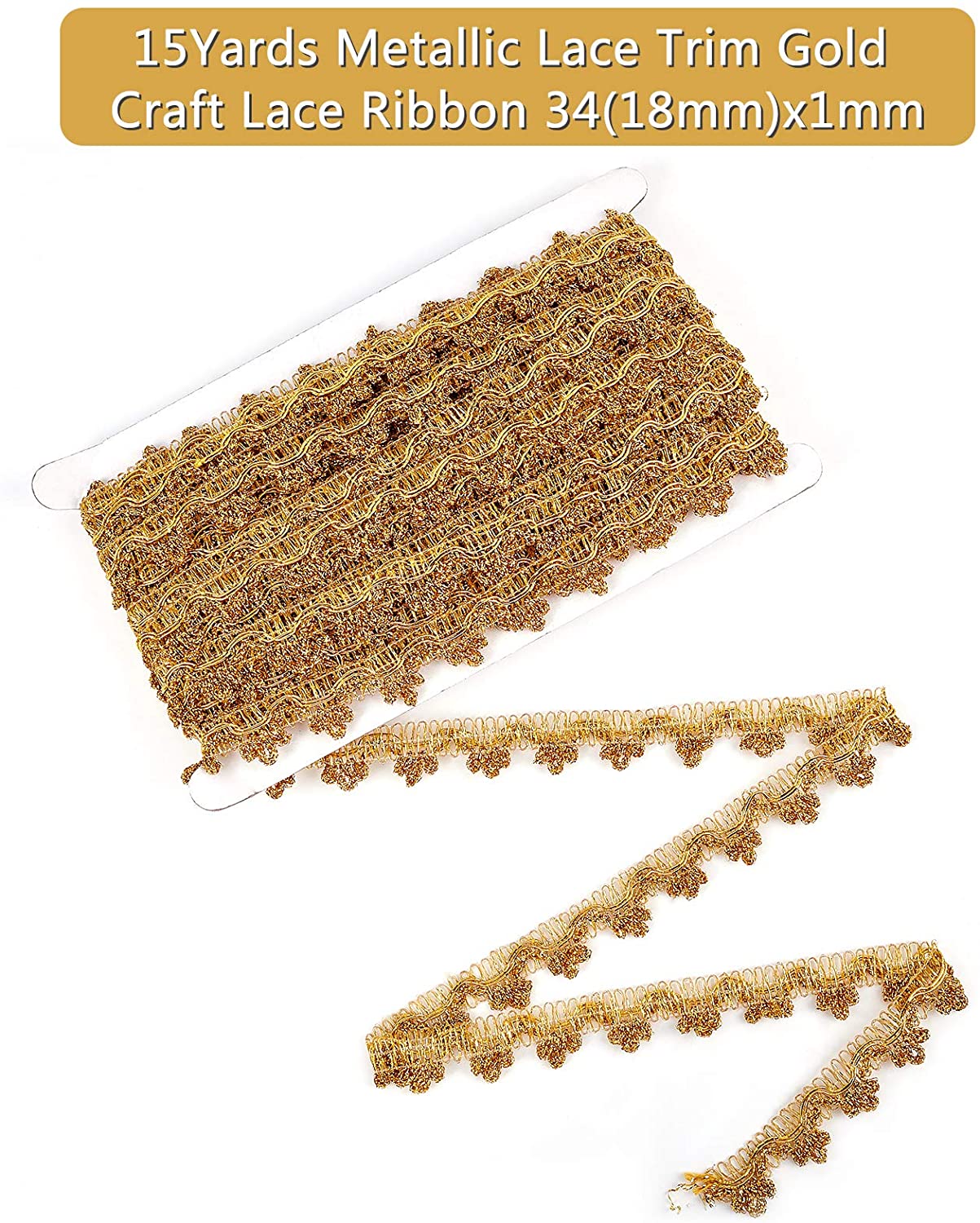 15Yards Metallic Lace Trim Gold Craft Lace Ribbon Decorated Gimp Trim 3/4(18mm) x1mm for Wedding Bridal, Costume or Jewelry, Crafts and Sewing