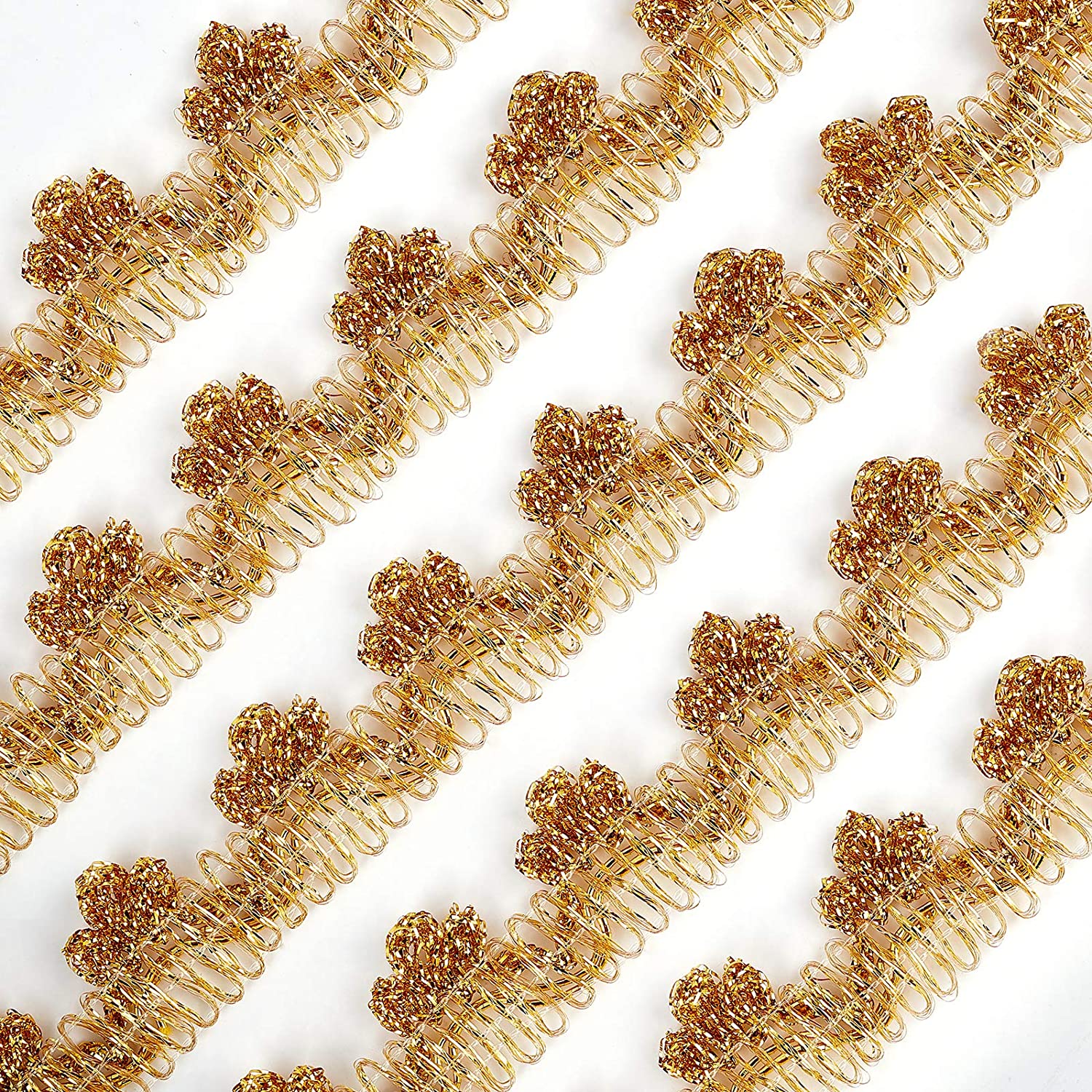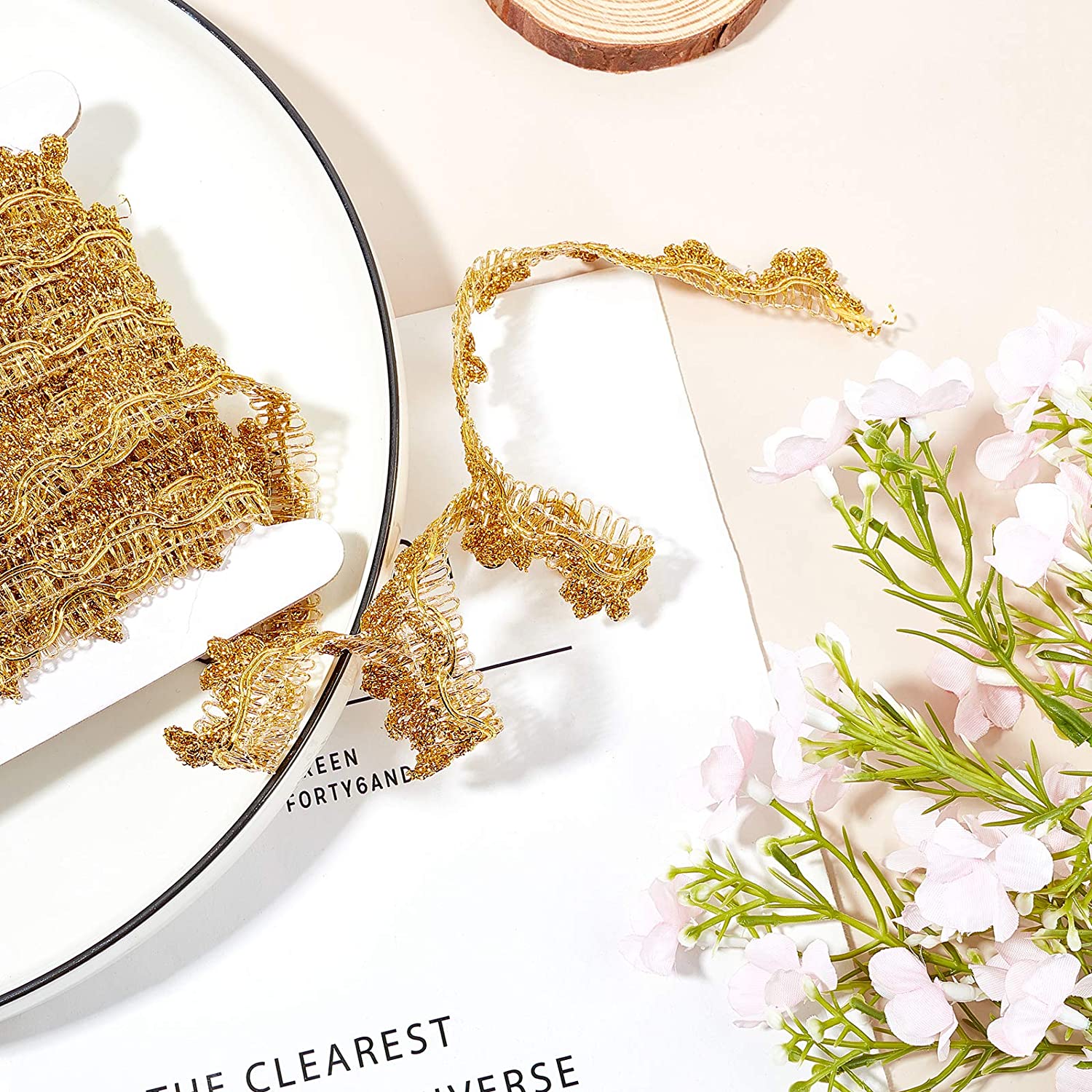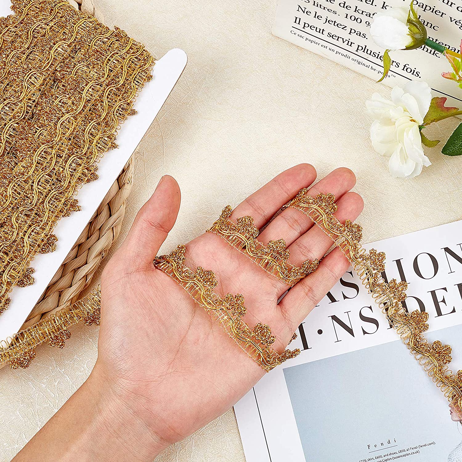 15Yards Metallic Lace Trim Gold Craft Lace Ribbon Decorated Gimp Trim 3/4(18mm) x1mm for Wedding Bridal, Costume or Jewelry, Crafts and Sewing