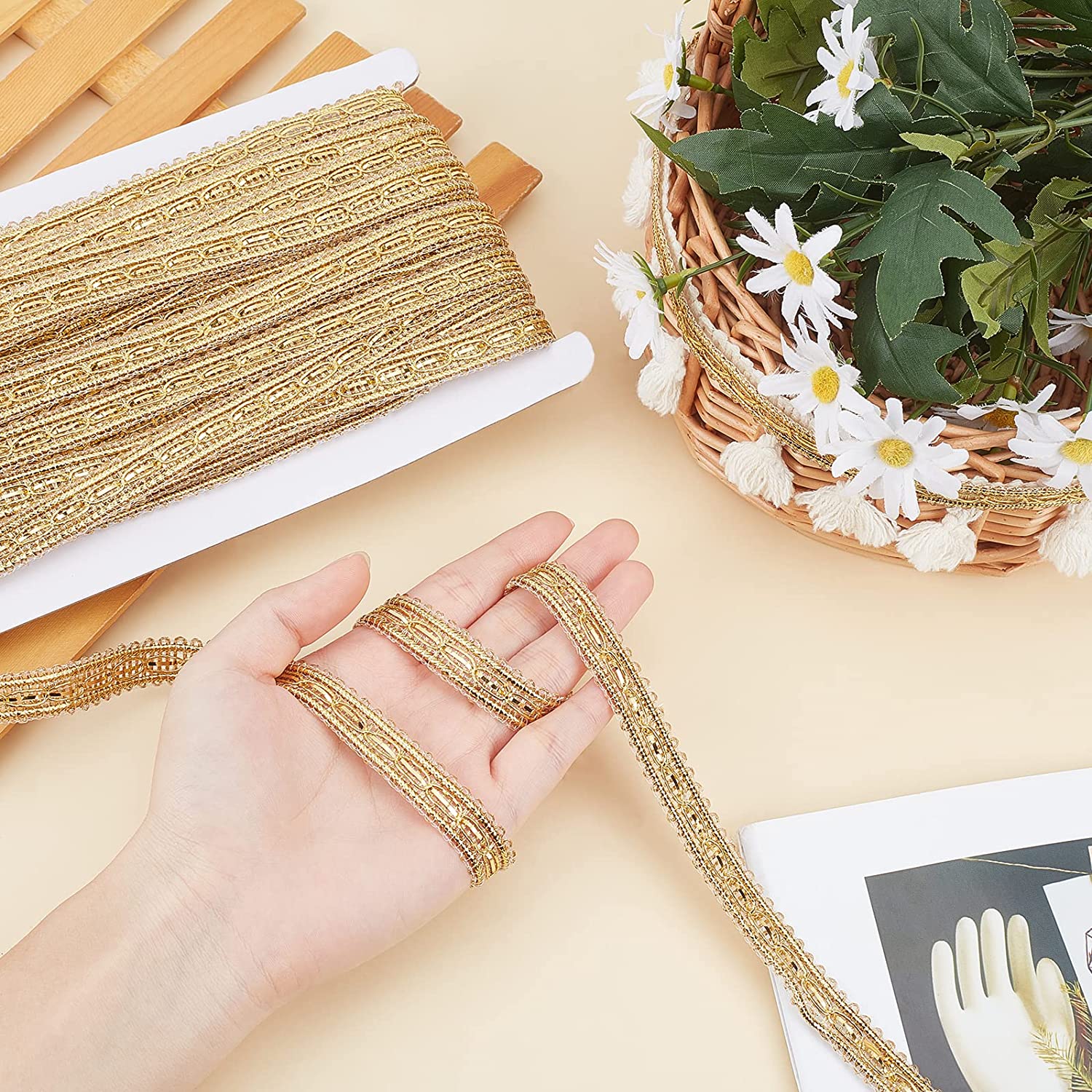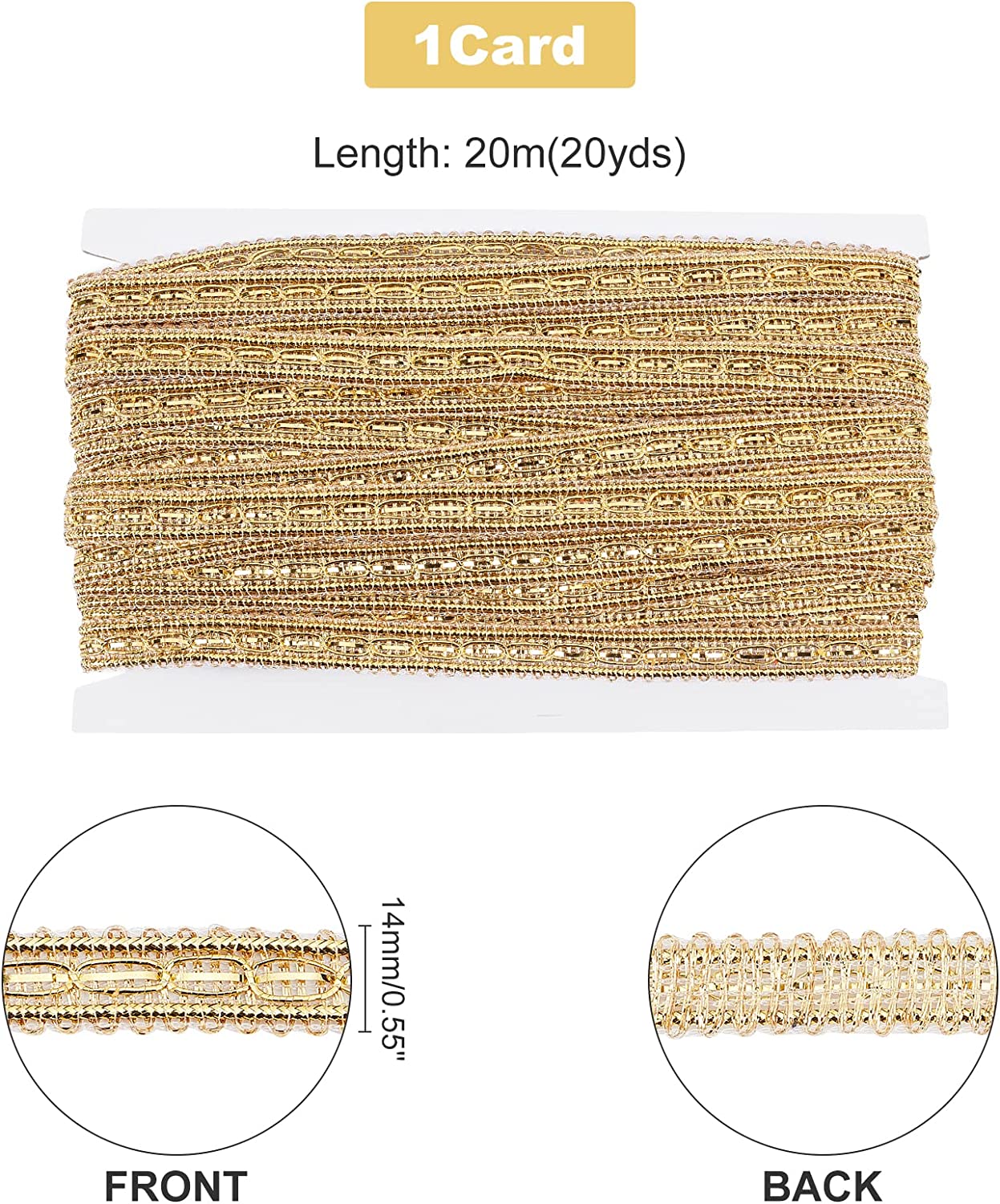 - Large Quantity: lustrous golden, about 14mm/0.5 wide, 20m/21.8 yards long, large quantity and proper size for sewing crafts. Can be cut into any length, easily sew on or glue-on. Wrapped in a flat roll, convenient for your store and use.
