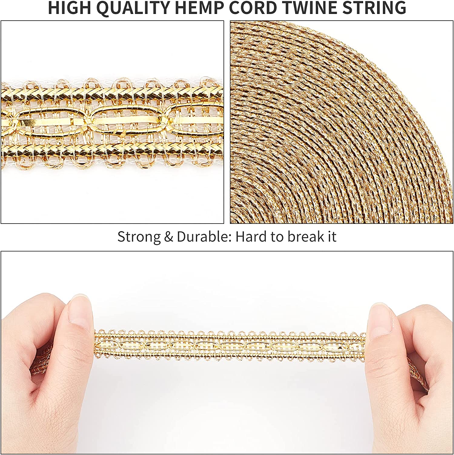 21.8 Yards Gimp Braid Trim 14mm/0.5 Shiny Lurex Trim Gold Decorative Fabric Ribbon Metallic Braid Lace Trim for Costume DIY Sewing Craft Embellishment Upholstery Home Decor