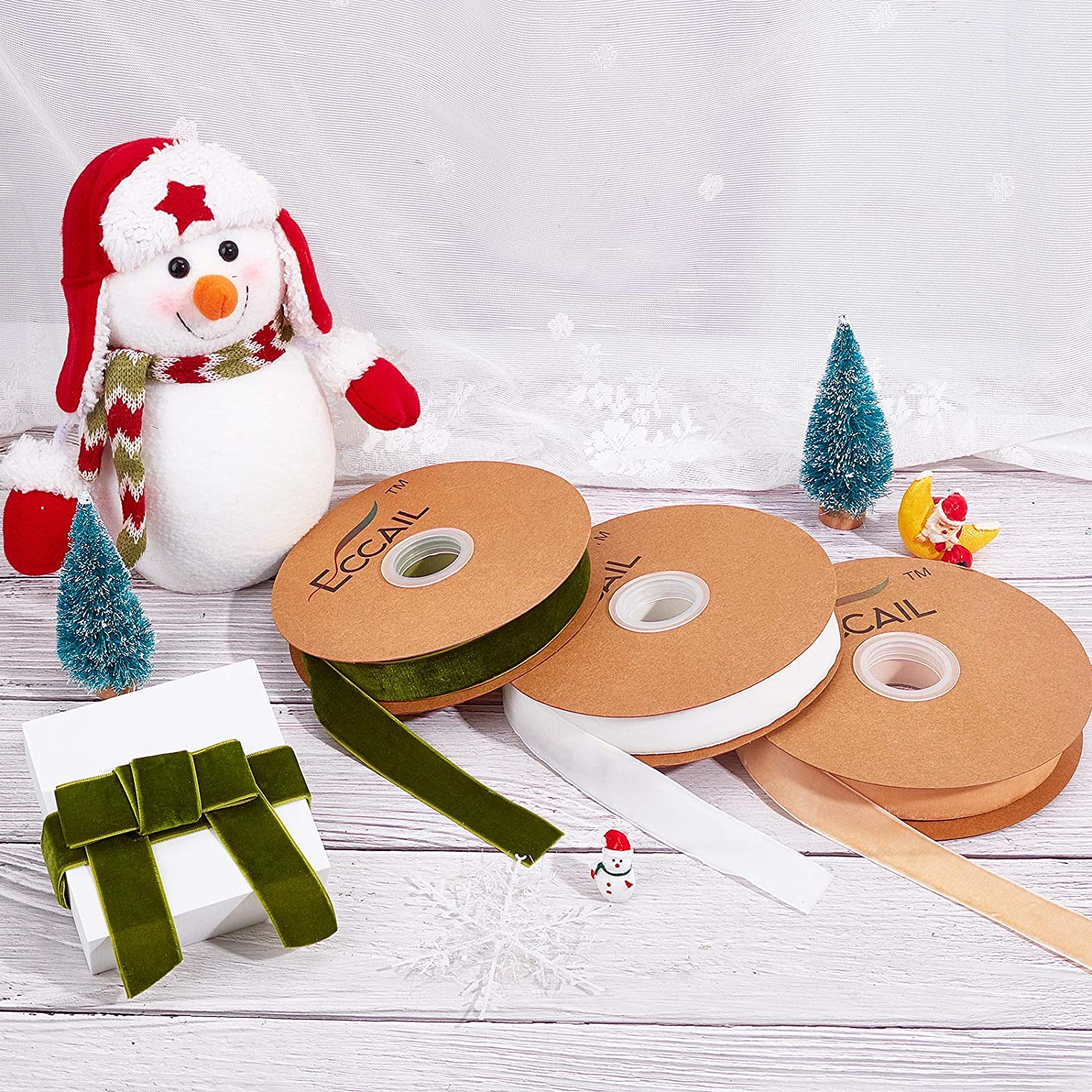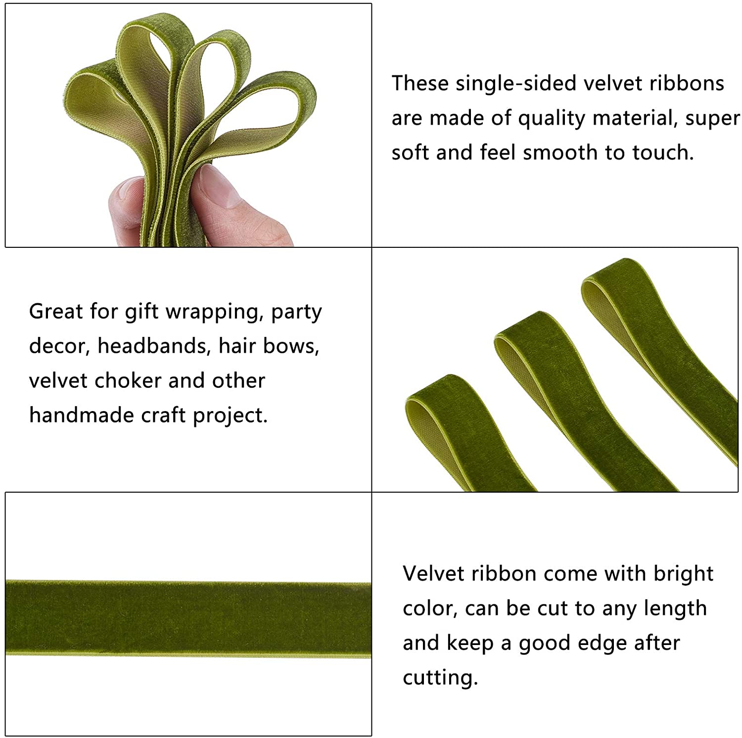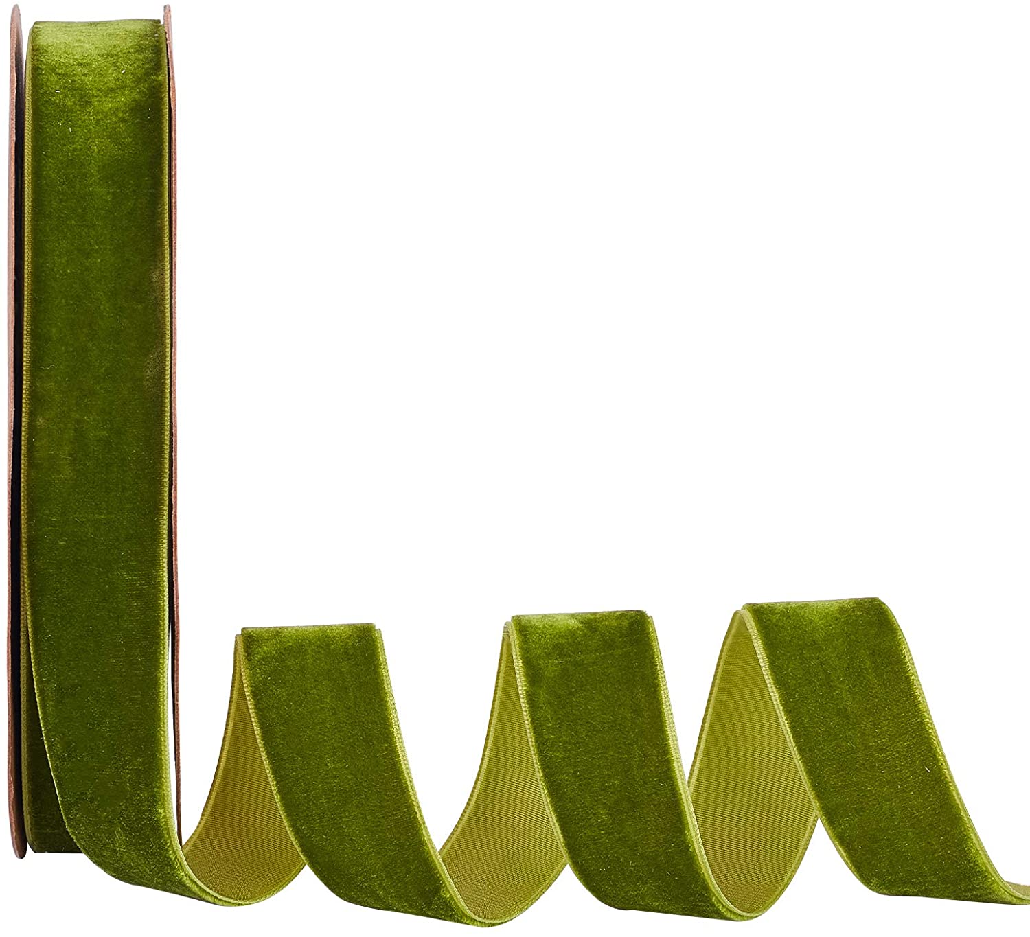 20 Yards ?¨¢ 1 Inch Single Side Velvet Ribbon, Satin Ribbon Roll for Wedding, Gift Wrapping, Hair Bows, Flower Arranging, Home Decorating ( Olive )