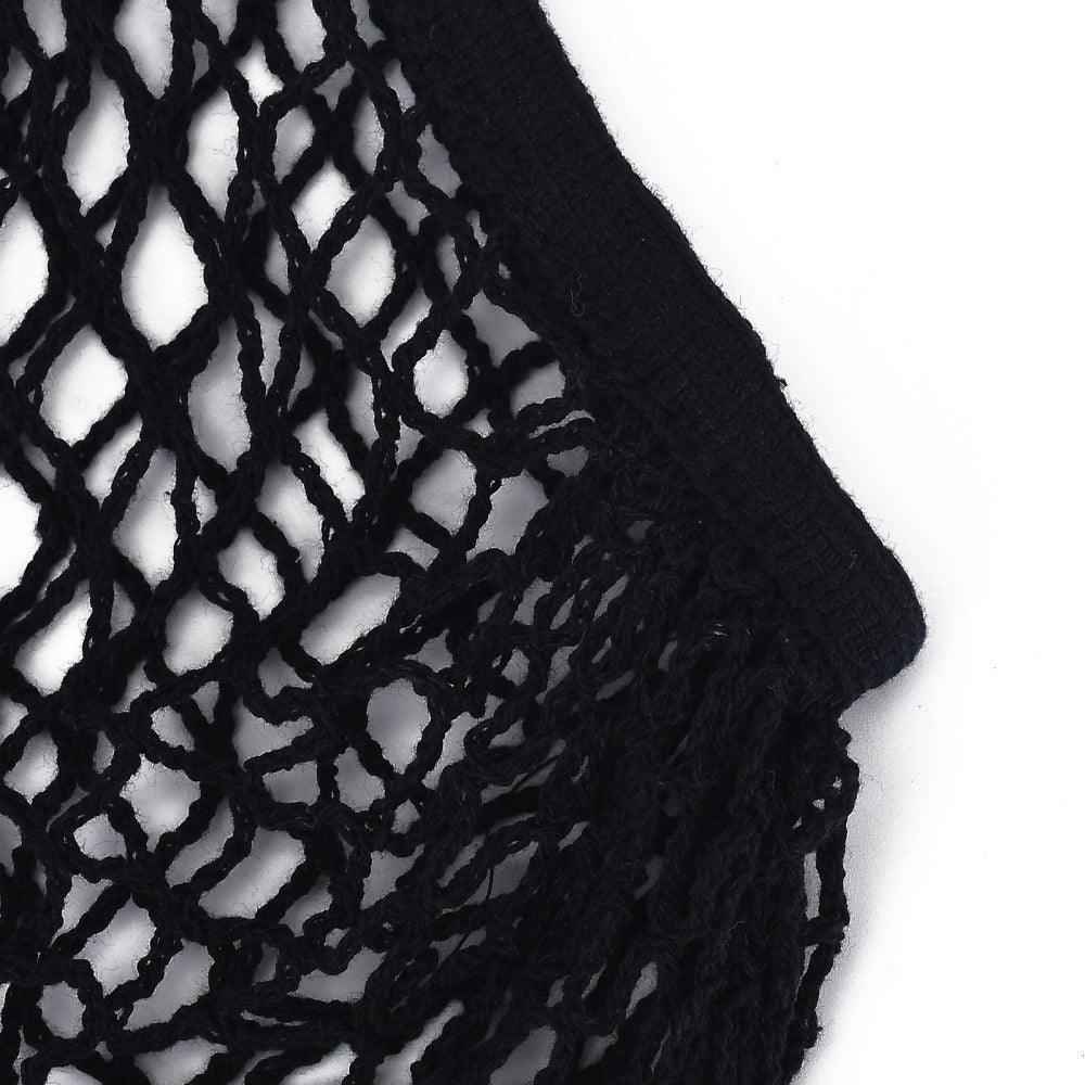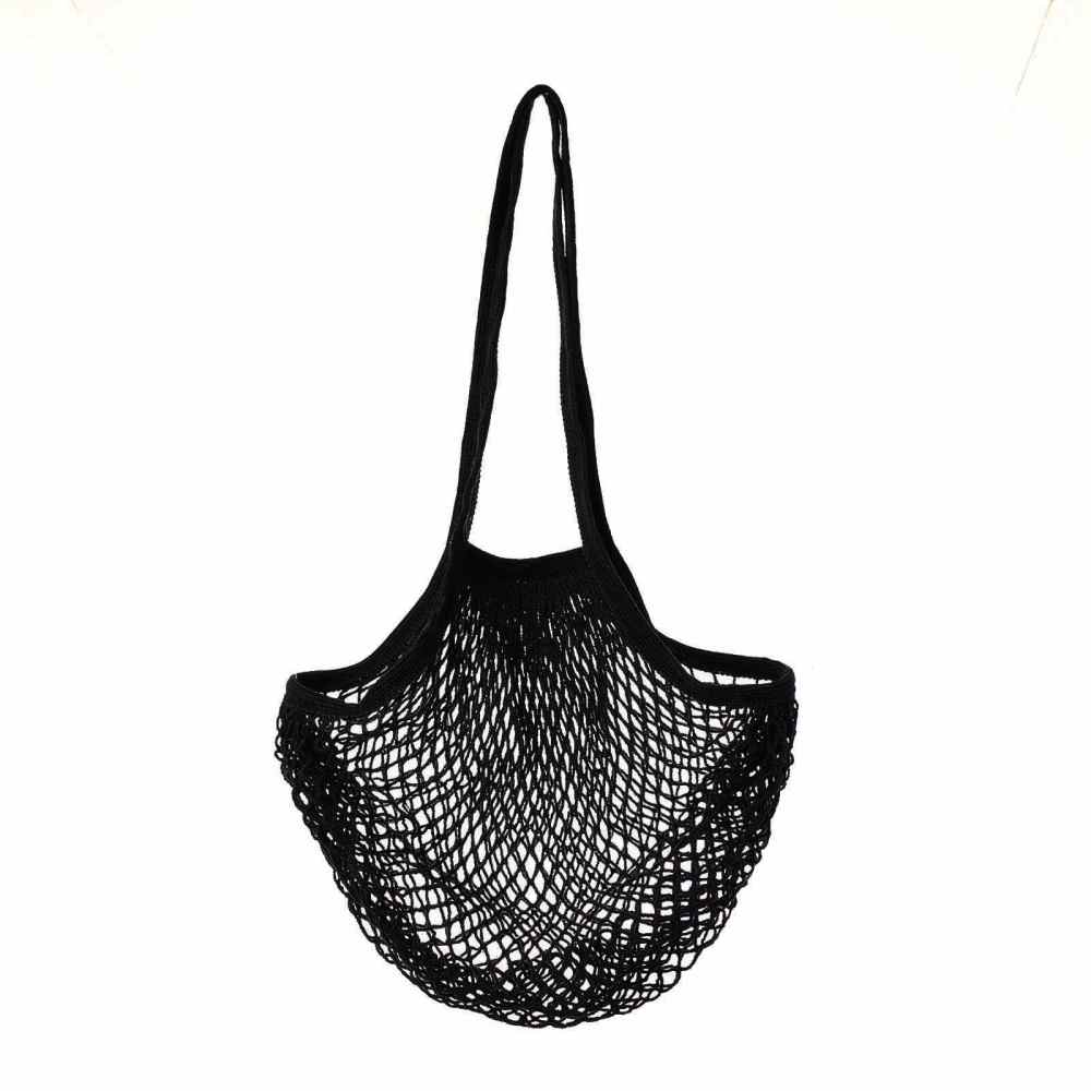 Portable Cotton Mesh Grocery Bags, Reusable Net Shopping Handbag, Black