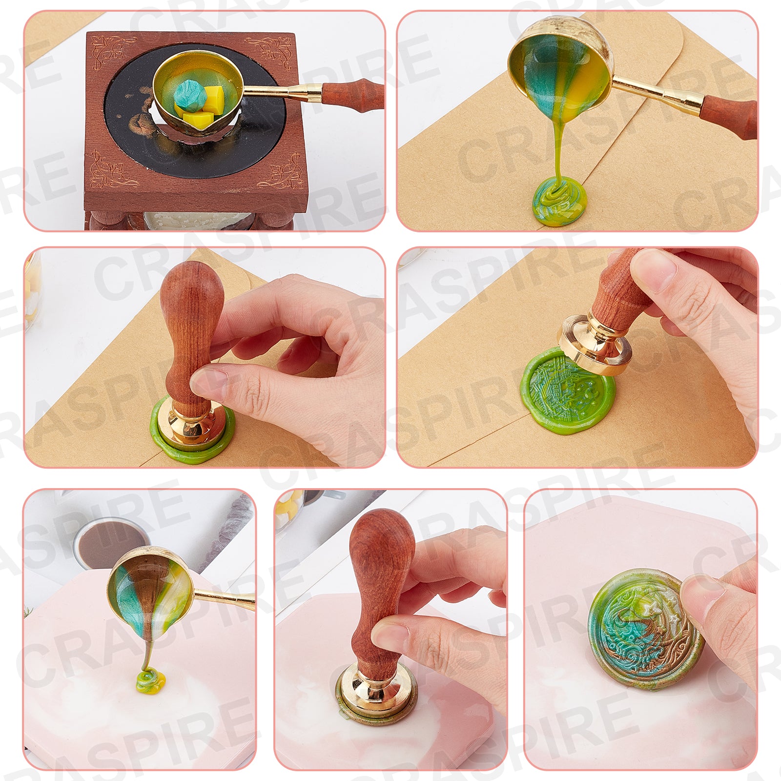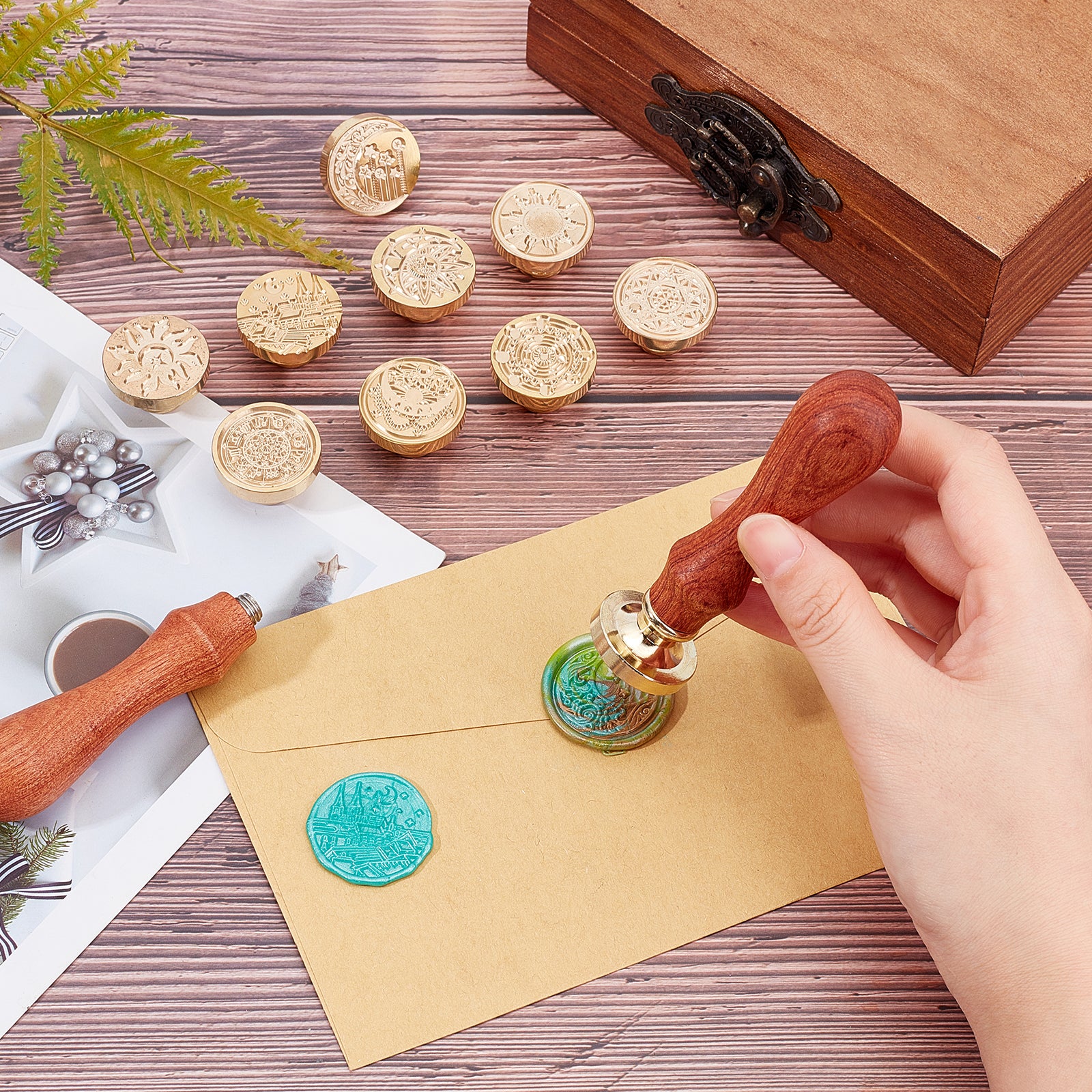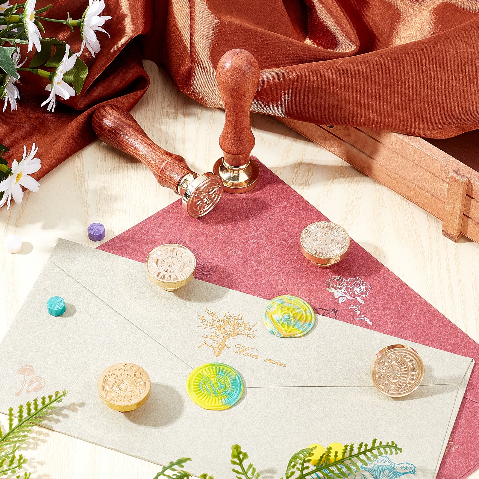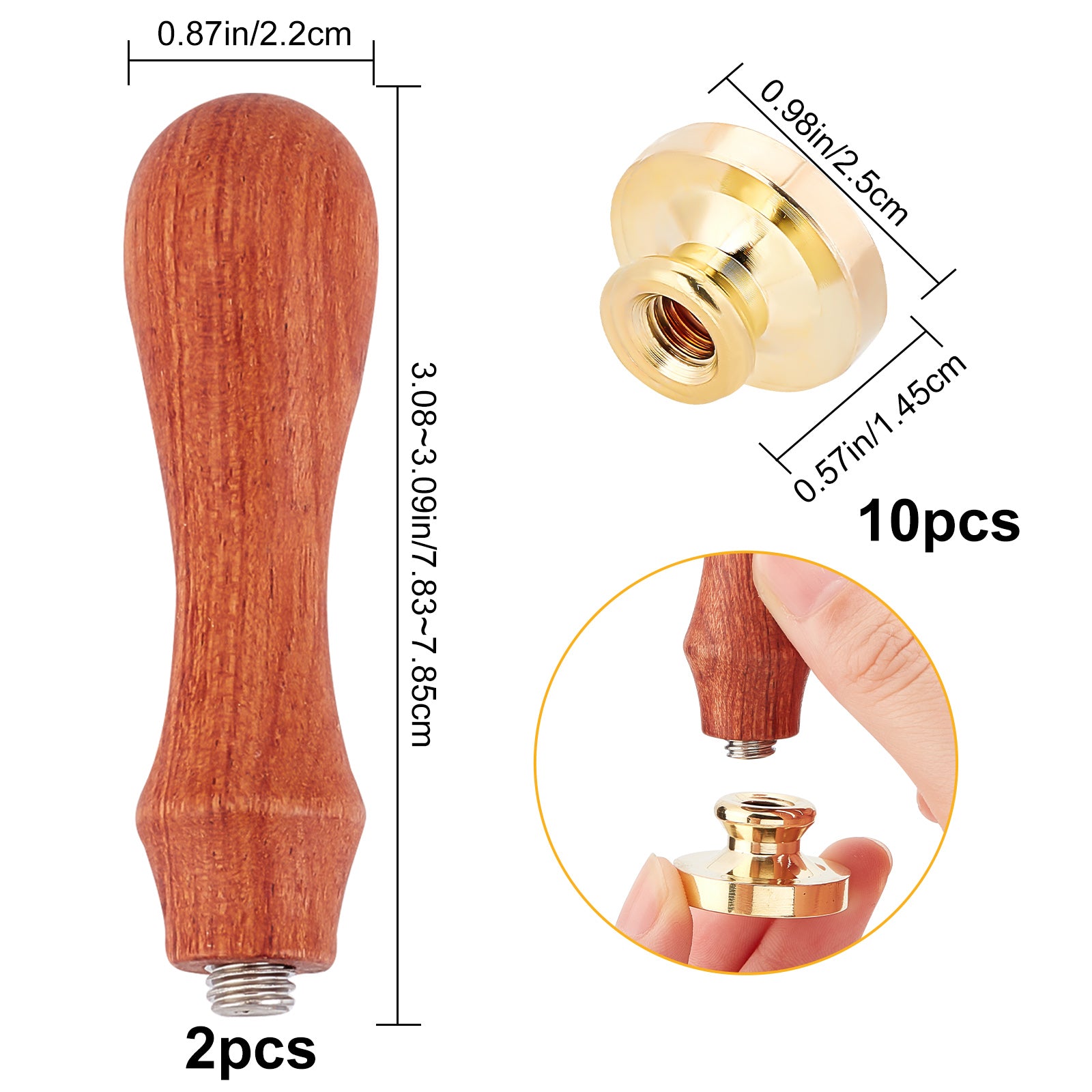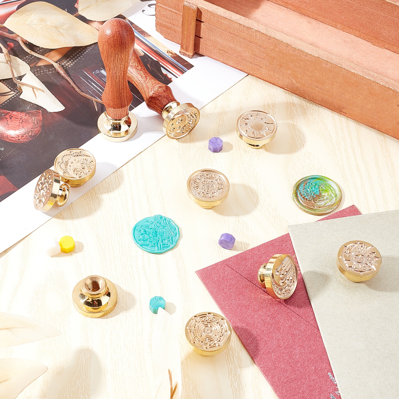 - Wax Seal Stamp Set: 6 pieces brass stamp heads + 2 pieces universal wood handles.