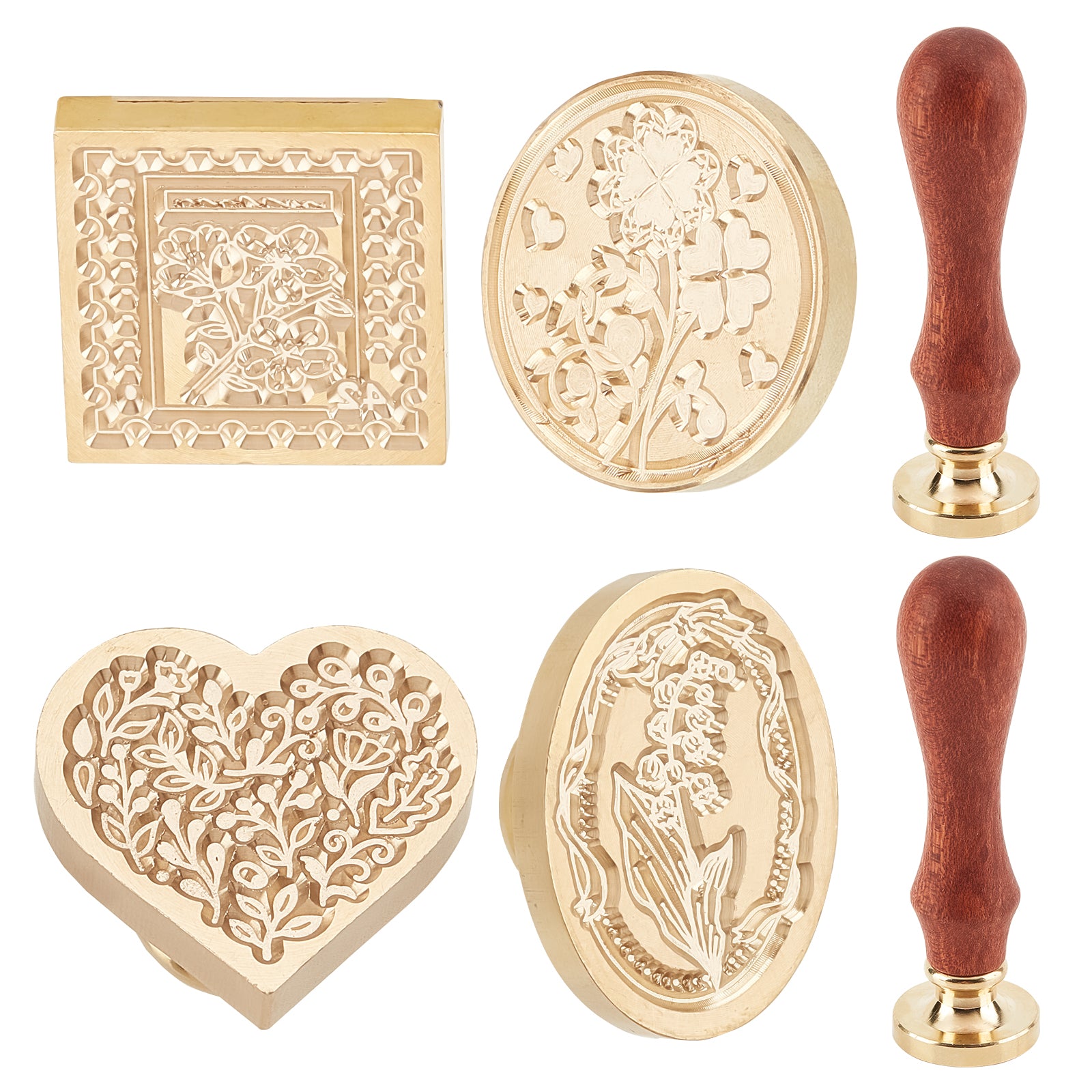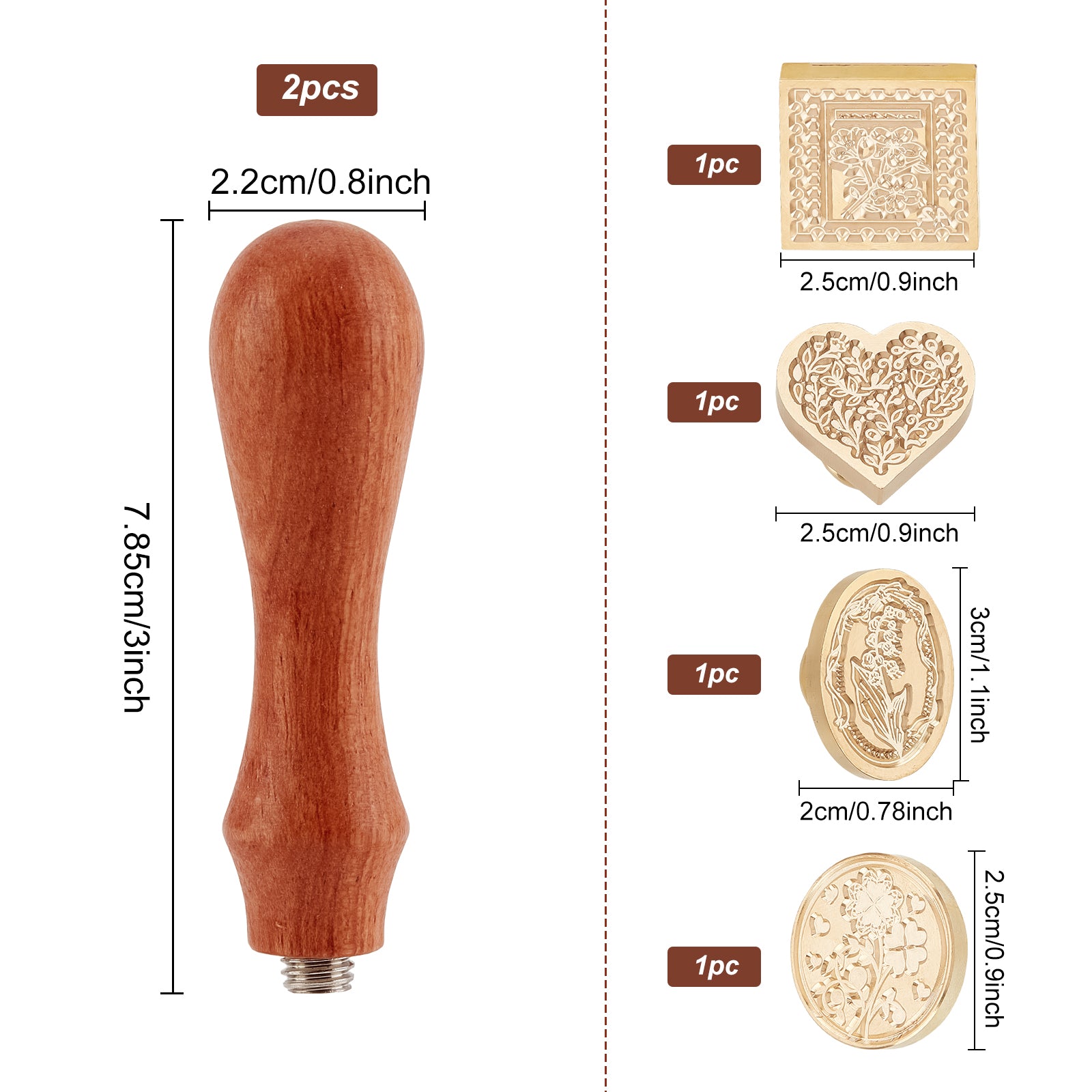 - Wax Seal Stamp Set: 4 pieces wax seal stamp heads + 2 pieces wood handles.