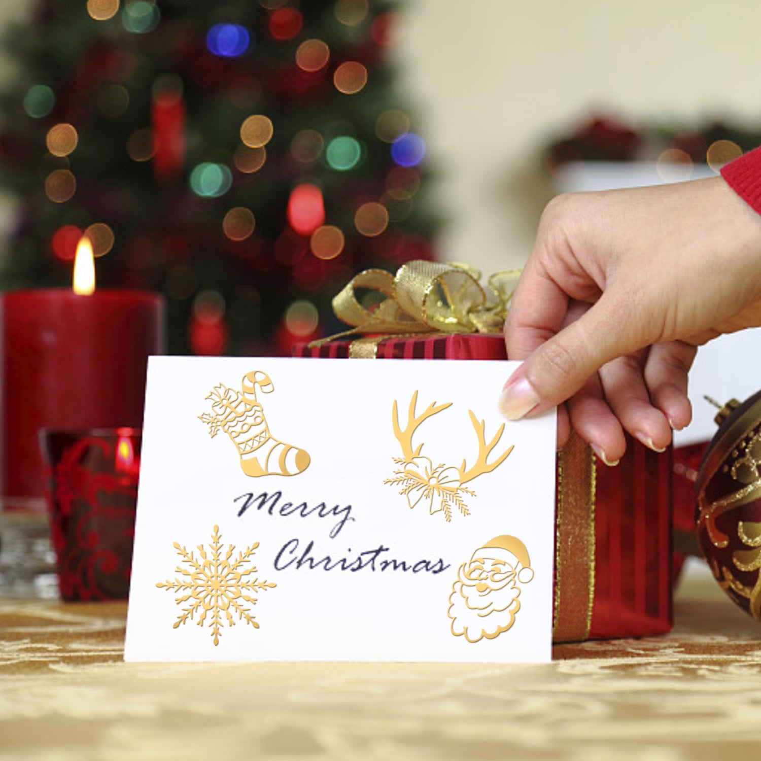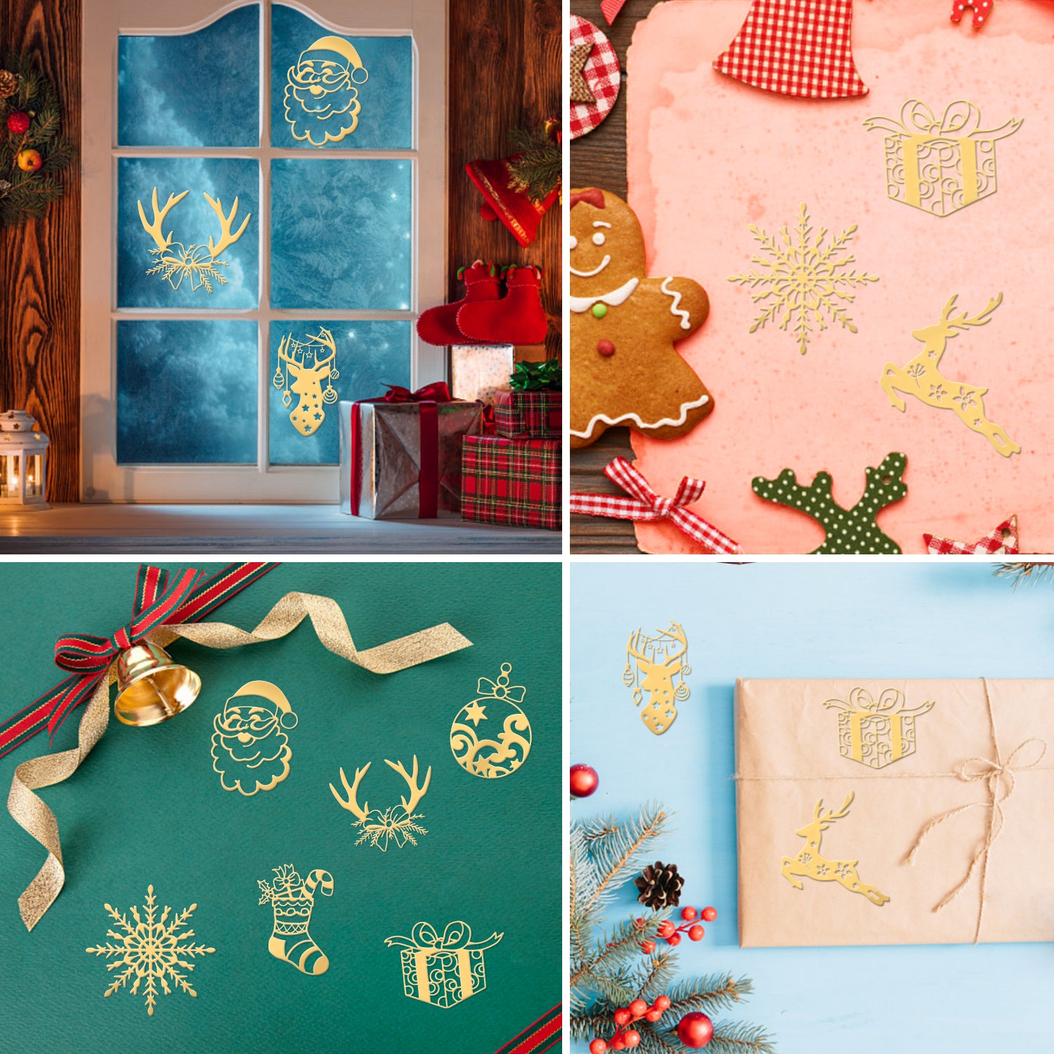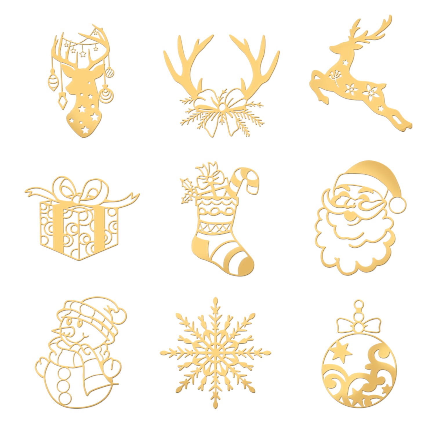 - 9Pcs 9 Style Custom Carbon Steel Self-adhesive Picture Stickers, Golden, Christmas Themed Pattern.