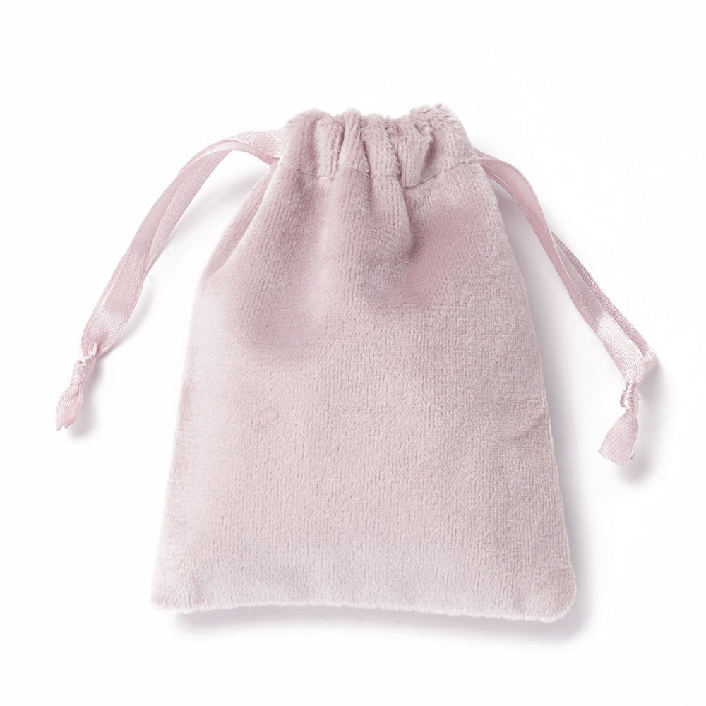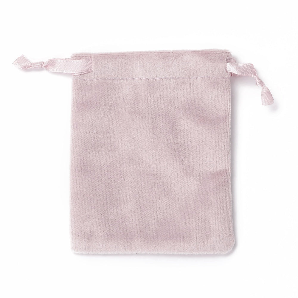 50 pc Velvet Jewelry Drawstring Bags, with Satin Ribbon, Rectangle, Misty Rose, 10x8x0.3cm
