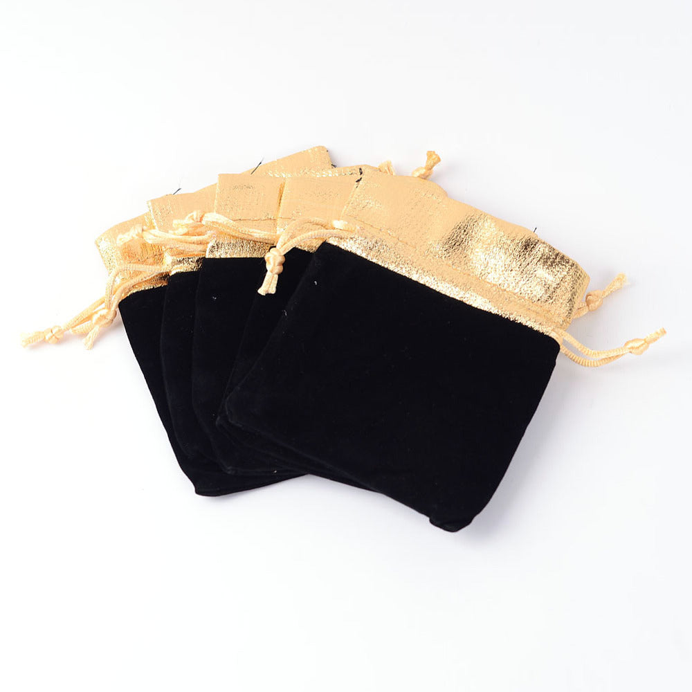 6 pc Rectangle Velvet Jewelry Bag, Black, 12x10cm