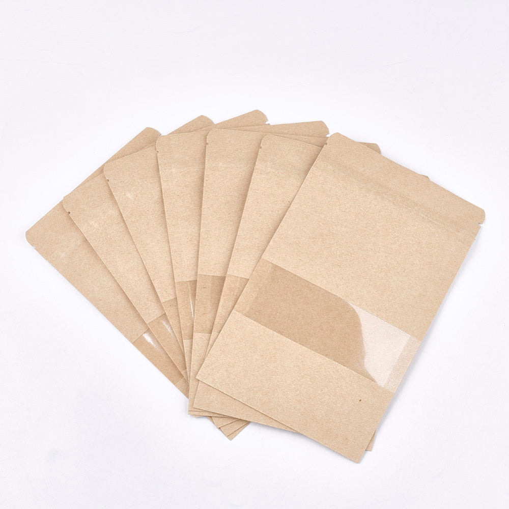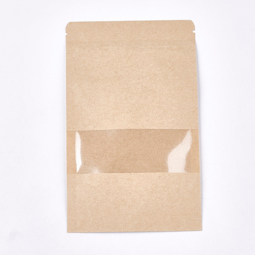 Resealable Kraft Paper Bags, Resealable Bags, Small Kraft Paper Stand up Pouch, with Window, Navajo White