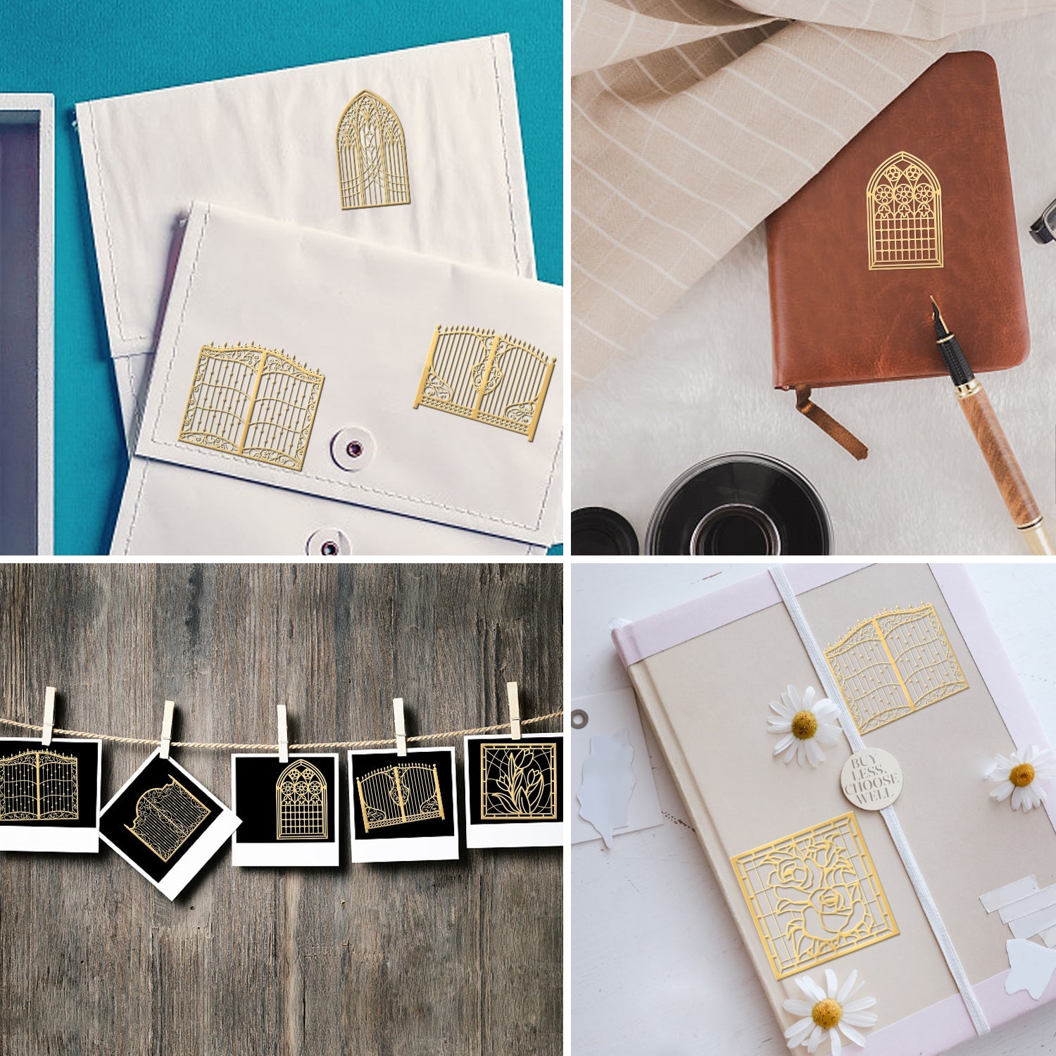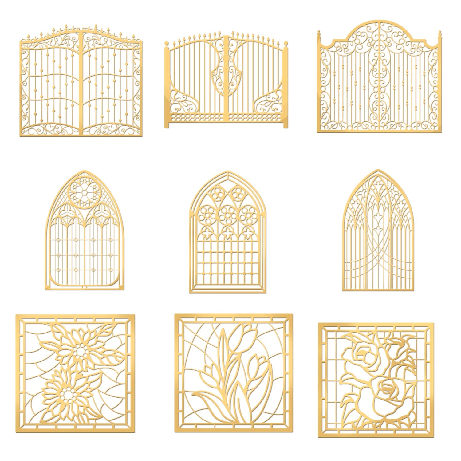 Craspire 9Pcs 9 Styles Nickel Self-adhesive Picture Stickers, Golden, Window & Door, Mixed Patterns, 40x40mm, 1pc/style