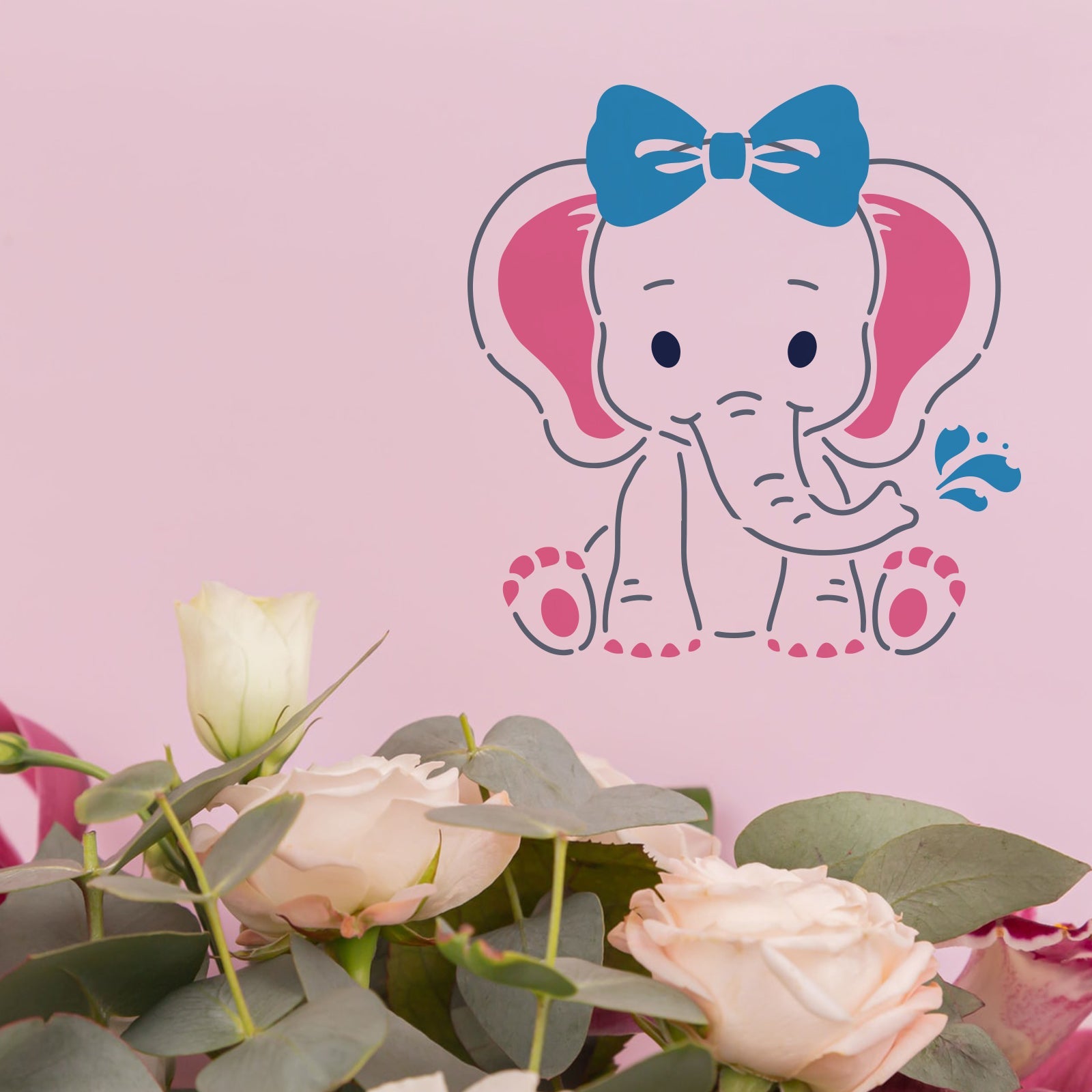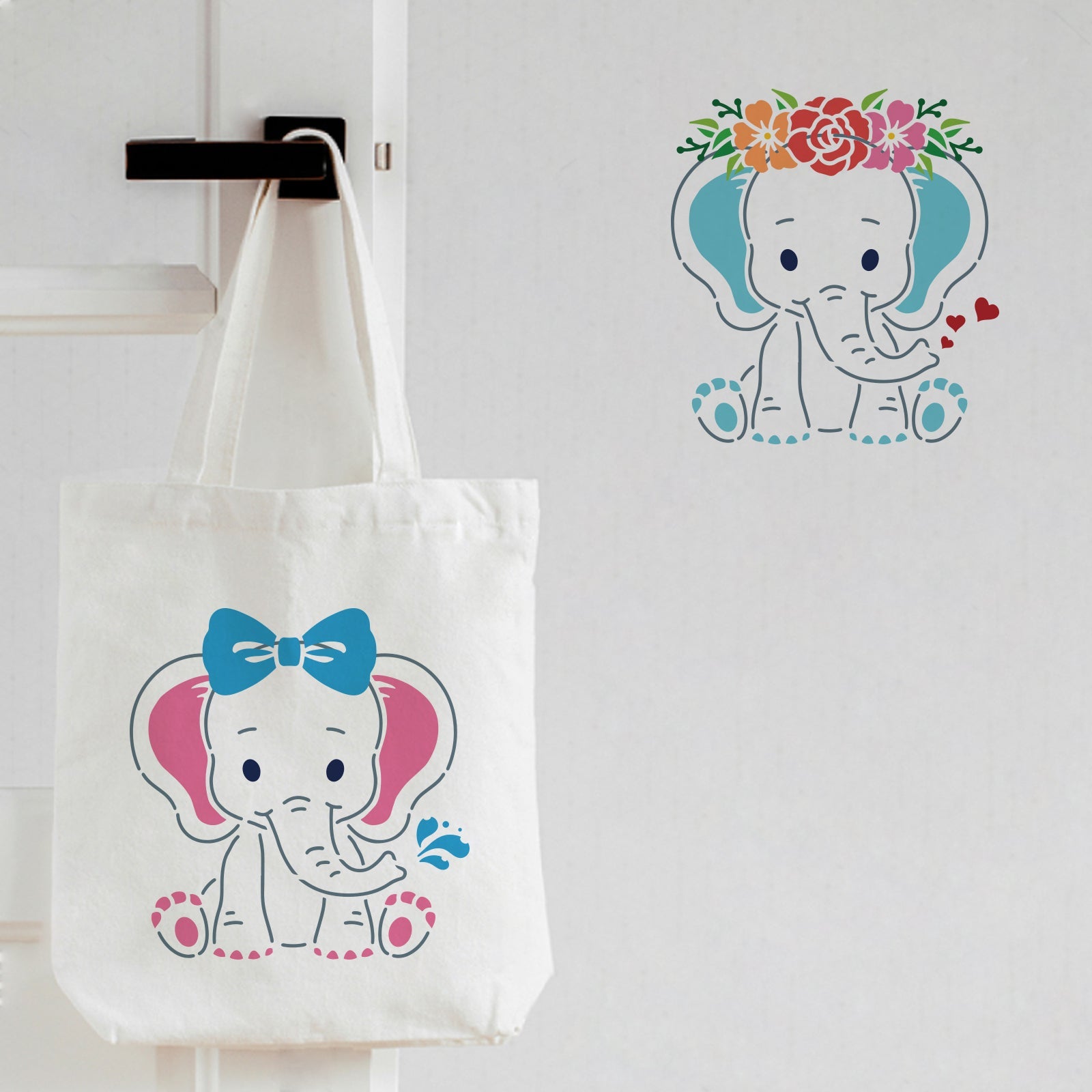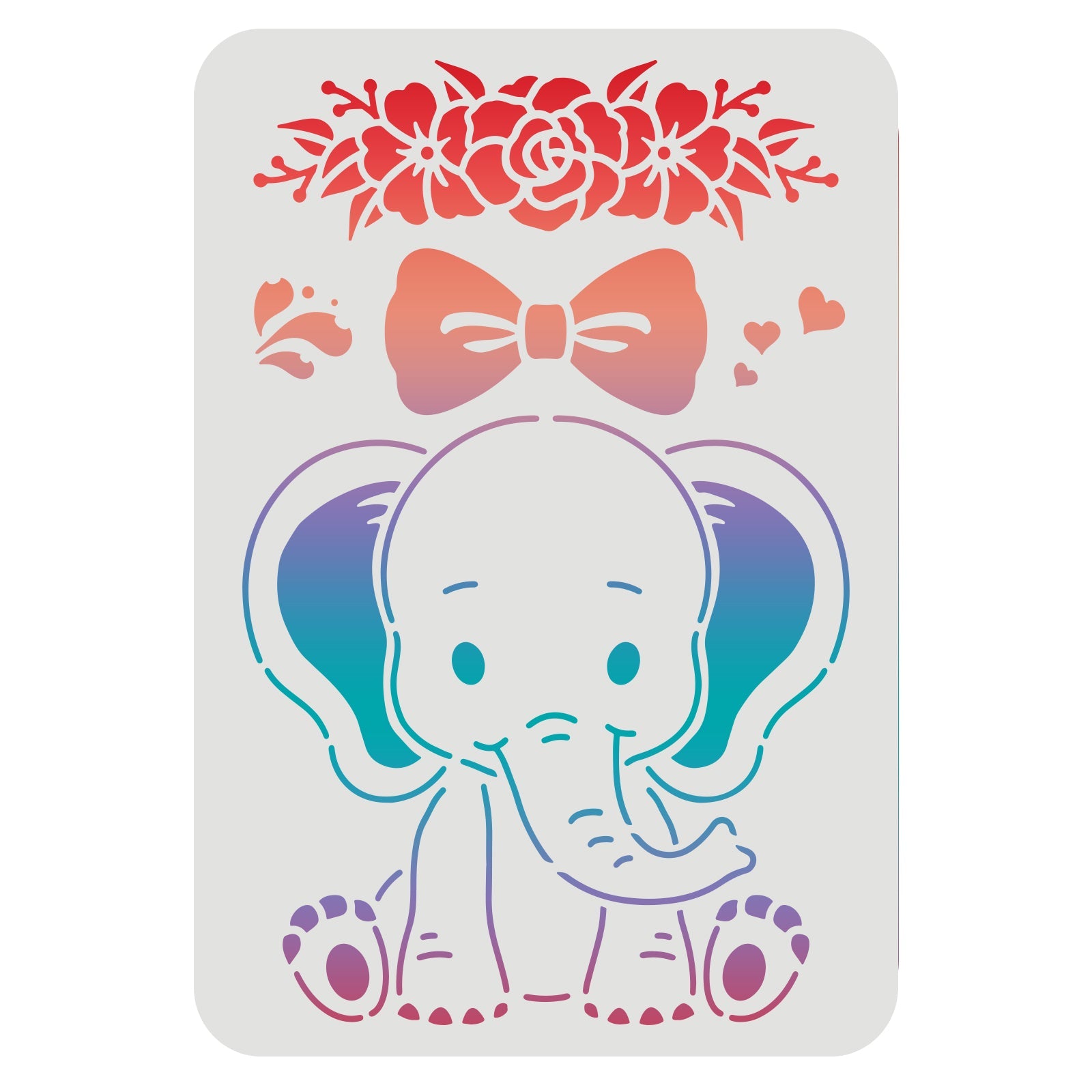 Plastic Drawing Painting Stencils Templates, Rectangle, Elephant Pattern