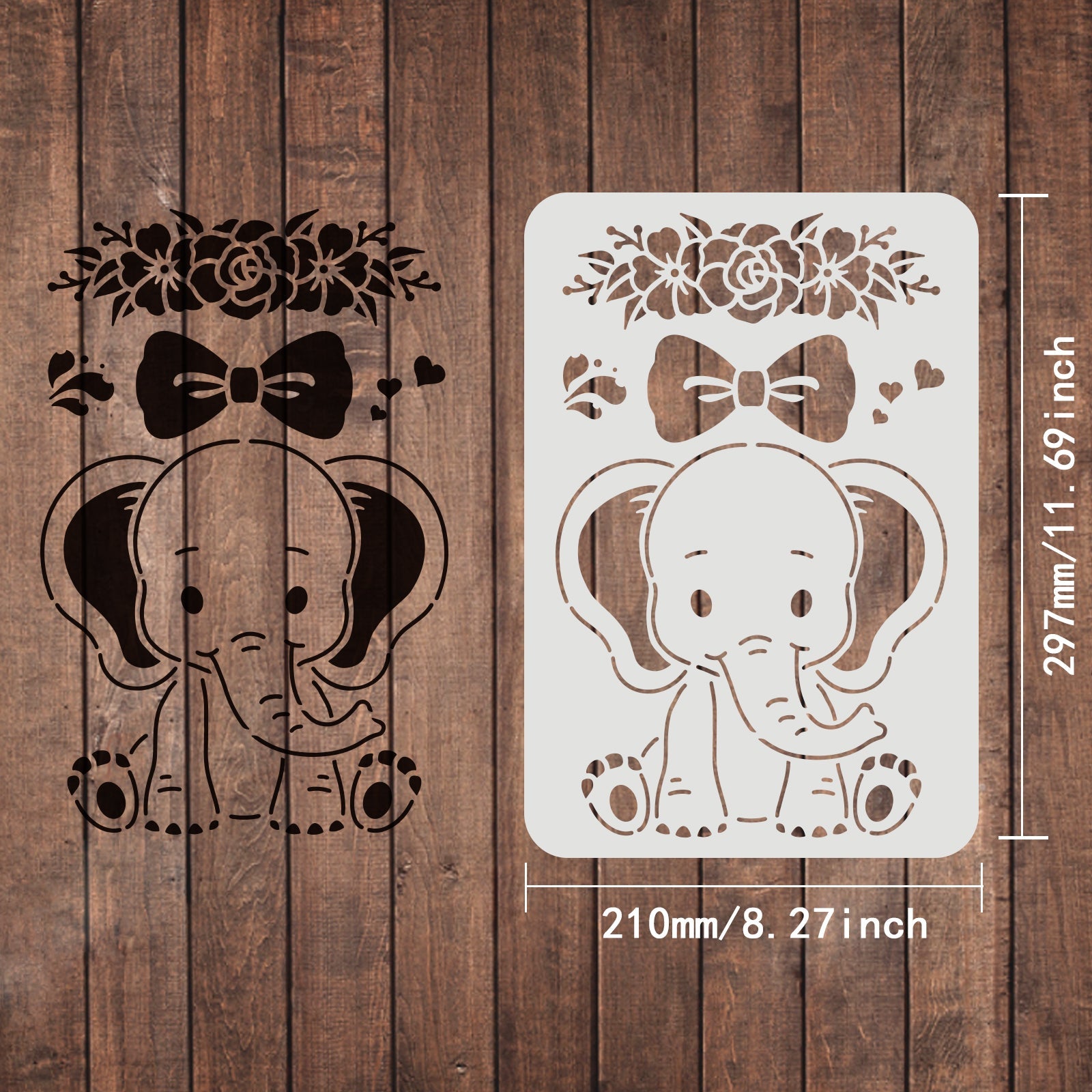 CRASPIRE Plastic Drawing Painting Stencils Templates, Rectangle, Elephant Pattern, 297x210mm