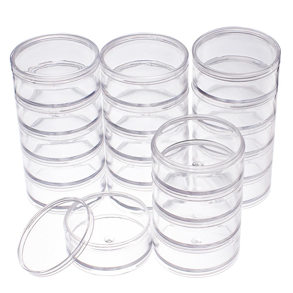 1 Box 60ml Stackable Round Plastic Containers 4 Column(5 Layer/Column) Bead Storage Jars for Beads, Buttons, Crafts and Small Findings