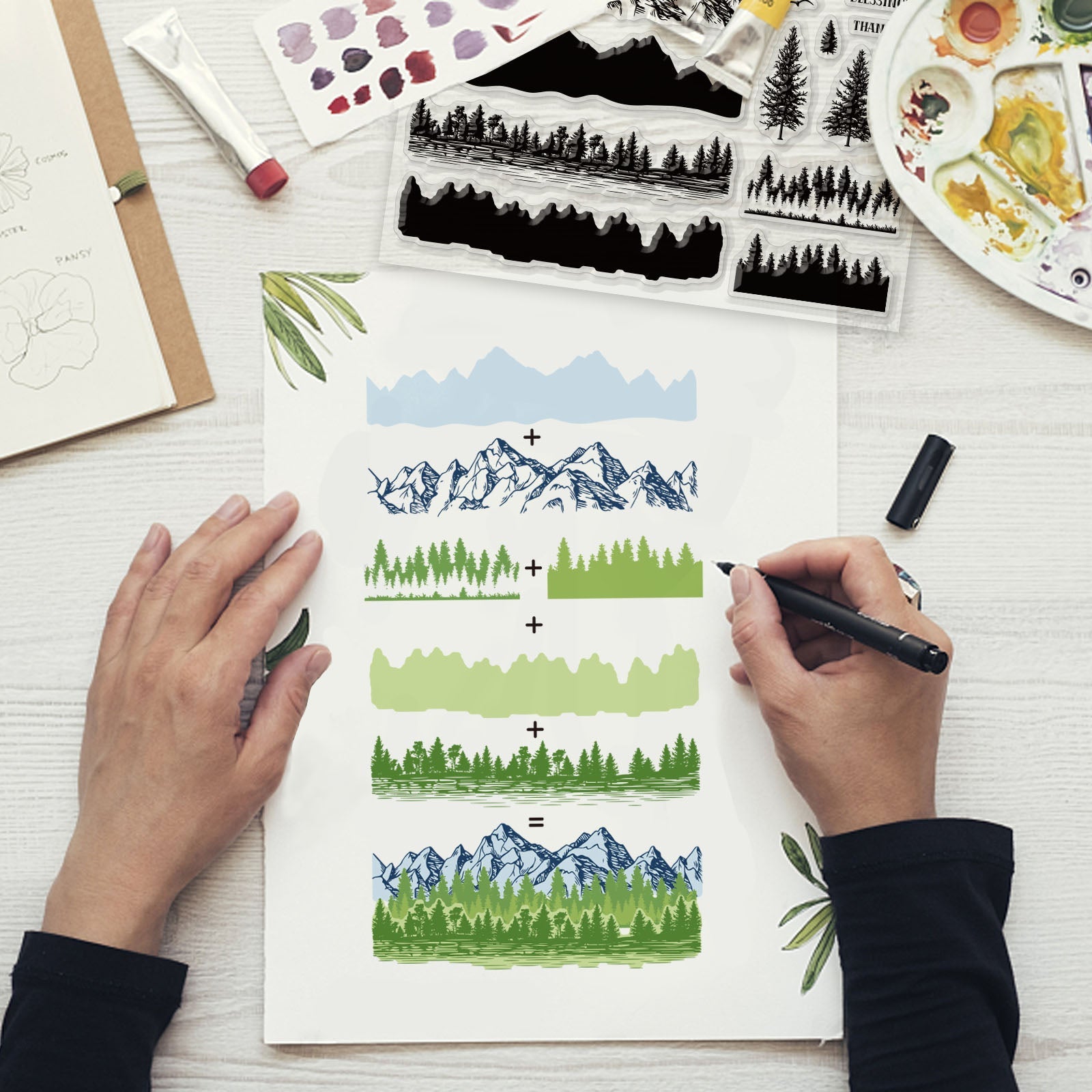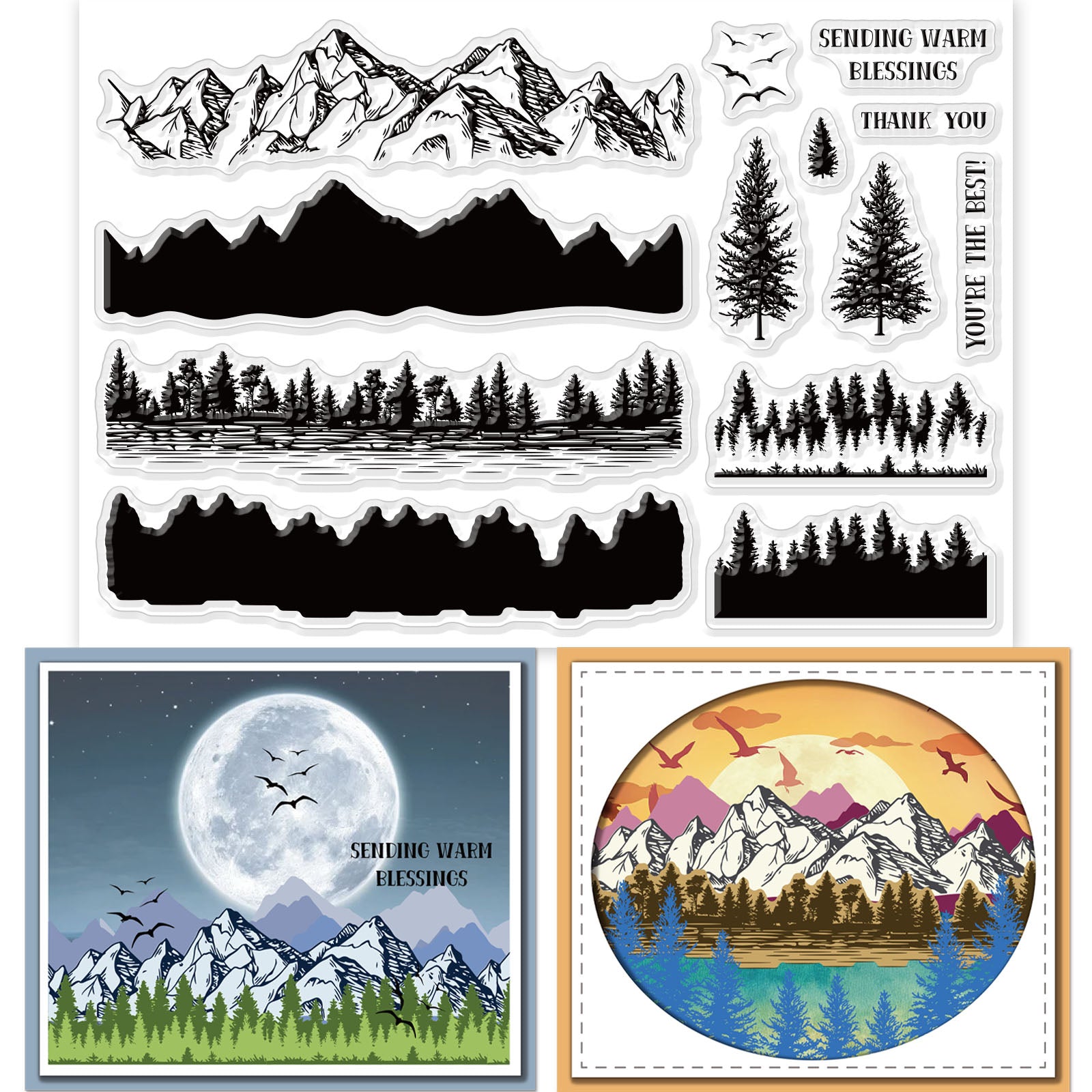 PVC Plastic Stamps, for DIY Scrapbooking, Photo Album Decorative, Cards Making, Stamp Sheets, Mountain Pattern